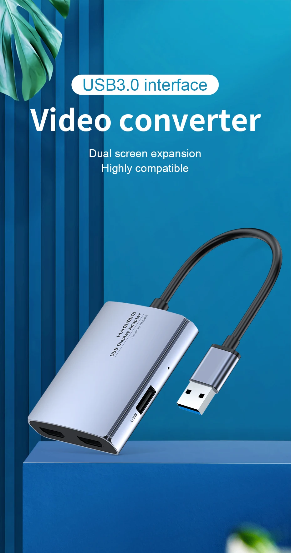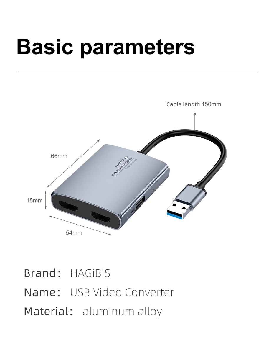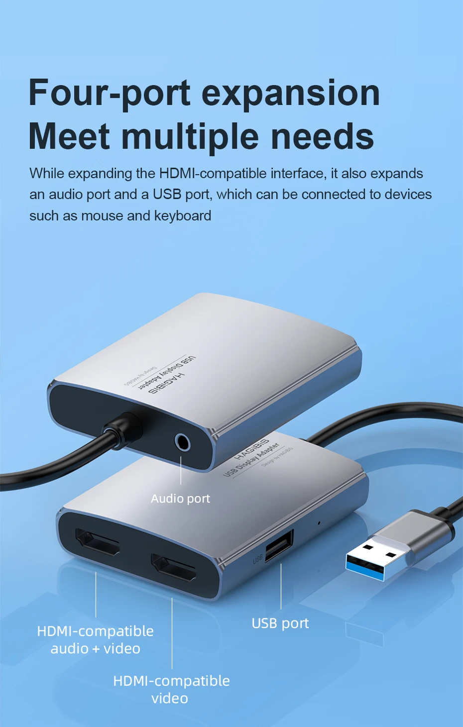 Comprar Hagibis-adaptador Compatible con USB 3,0 a HDMI Dual, convertidor de vídeo con Triple pantalla, concentrador USB de 3,5mm para Audio de Windows 7/8/10/11, Mac OS