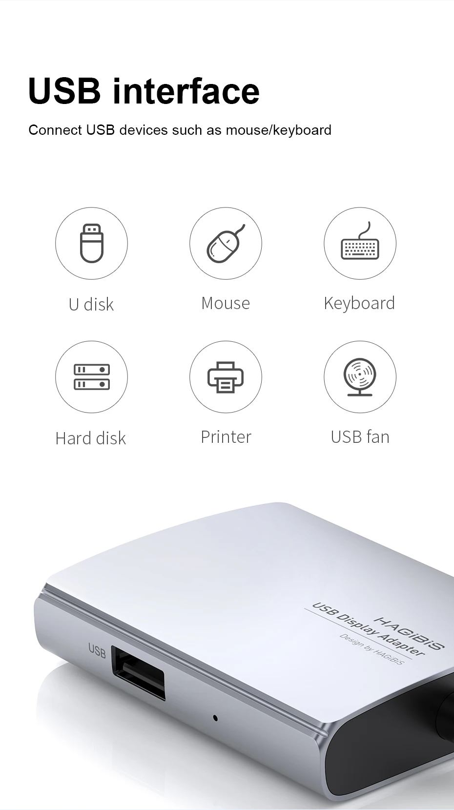 【Interfaz adicional 】No es solo un adaptador de vídeo, sino que también tiene una interfaz USB e interfaz AUX, que admite la conexión de otros dispositivos externos