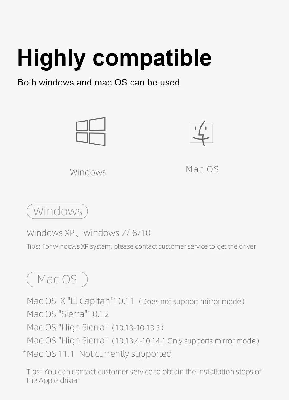 【Necesita instalar el driver】El producto viene con un instalador de controladores, cuando lo conectes por primera vez, ¡habrá un aviso para instalar el controlador en la pantalla! Si omite la instalación, también puede ponerse en contacto con nuestro servicio en línea para enviarle los archivos de instalación
