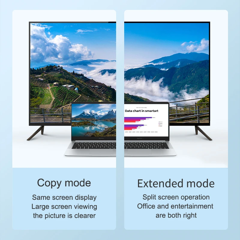 【Copiar/extender dos modos】La pantalla convertida puede admitir dos modos de expansión y copia, ¡puede elegir libremente!Cuando se utilizan ambos puertos HDMI al mismo tiempo, los dos monitores adicionales solo pueden mostrar el mismo contenido