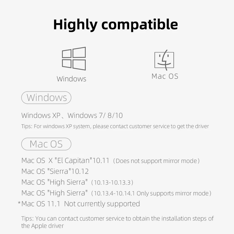 【Necesita instalar el driver】El producto viene con un instalador de controladores, cuando lo conectes por primera vez, ¡habrá un aviso para instalar el controlador en la pantalla! Si omite la instalación, también puede ponerse en contacto con nuestro servicio en línea para enviarle los archivos de instalación