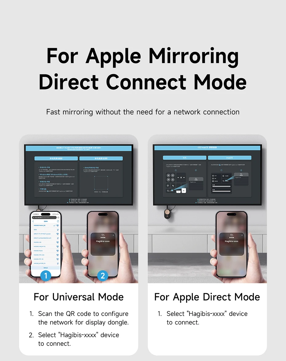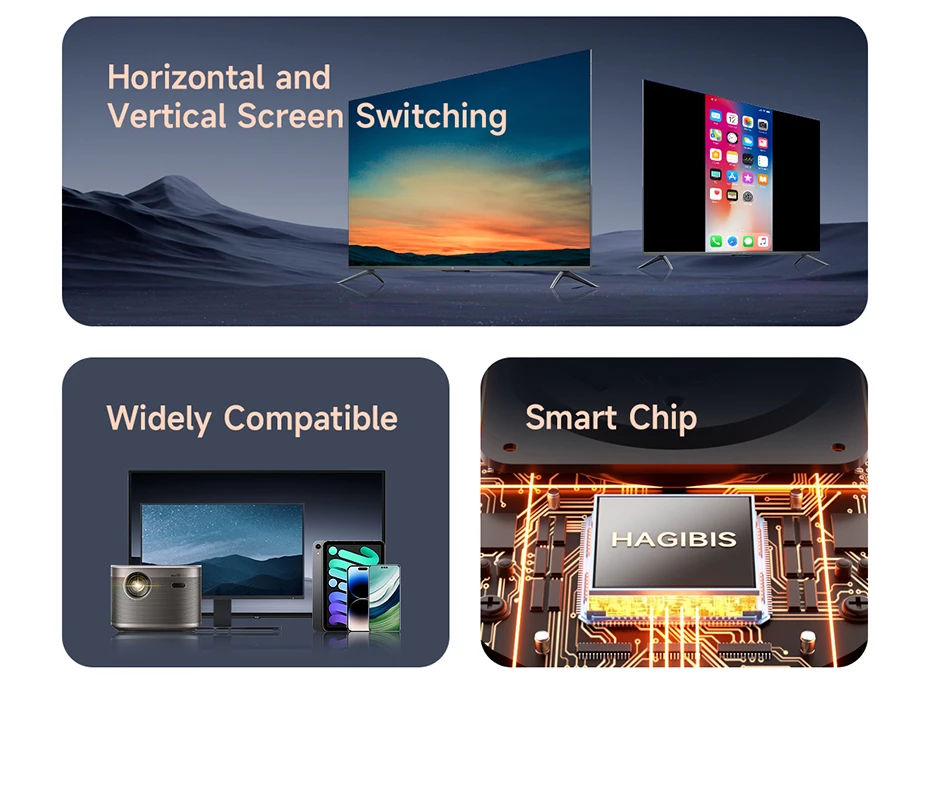 Amplia compatibilidad:Hagibis Wireless HDMI-Compatible Display Dongle Adapter es altamente portátil y perfecto para presentaciones de negocios al aire libre. Su potente chipset garantiza la compatibilidad con una amplia gama de dispositivos de salida compatibles con HDMI, incluidos ordenadores portátiles, reproductores de Blu-ray, cámaras, DVD, tabletas y más. Es adecuado para diversos entornos, como salas de conferencias, hogar
