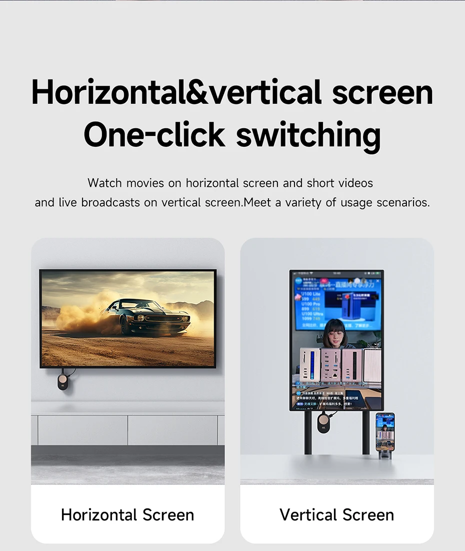 Pantalla horizontal y vertical:Un clic para cambiar la pantalla horizontal y la pantalla vertical. Vea películas en pantalla horizontal, videos cortos y transmisiones en vivo en pantalla vertical. Conozca una variedad de escenarios de uso