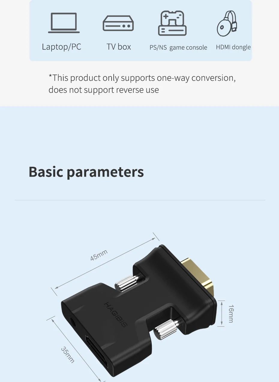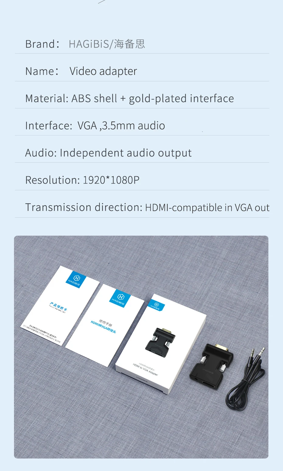Comprar Hagibis-adaptador HDMI compatible con VGA con puerto de Audio, convertidor de vídeo hembra de 3,5mm para PS4, portátil, PC, TV Box, Monitor, proyector