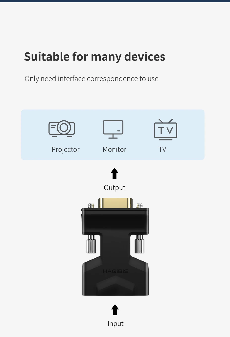 【Sincronización de audio y vídeo compatible】Viene con audio de 3,5 mm, puede conectarse al altavoz mediante un cable de audio de 3,5 mm (gratis).【No bidireccional】El adaptador hembra compatible con HDMI a VGA conecta un dispositivo compatible con HDMI a un monitor o proyector con puerto VGA mediante un cable adicional compatible con HDMI.Nota bondadosa: no bidireccional: este convertidor de vídeo solo convierte la señal compatible con HDMI a VGA.【Amplia compatibilidad】La fuente compatible con HDMI es compatible con escritorio/portátil/TV Stick/Raspberry Pi/tableta/cámara digital/cámara SLR/cámara de video con puerto compatible con HDMI; La fuente VGA es compatible con TV/monitor/proyecto/LCD/TV y otras pantallas con puerto VGA.【Alta resolución 1080P】Admite una resolución de hasta 1080P/1080i/720P para monitores o proyectores de alta definición. El conector compatible con HDMI chapado en oro resiste la corrosión y la abrasión y mejora el rendimiento de transmisión de la señal.Plug & play, no necesita controlador.【Ultra-MINI, DISEÑO ÚNICO】El convertidor compatible con HDMI a VGA puede transportar videos desde un dispositivo compatible con HDMI a un monitor o proyector con puerto VGA. Con este dispositivo podrás disfrutar de vídeo HD en pantalla grande.