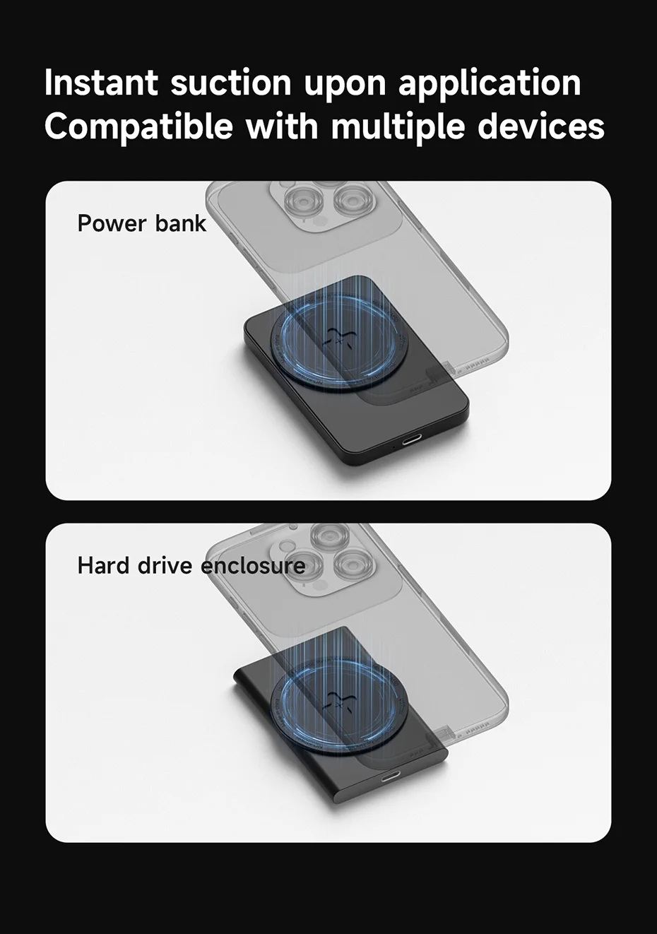 Compatible con varios accesorios magnéticos:Funciona perfectamente con bancos de energía, cargadores inalámbricos, gabinetes de discos duros y más
