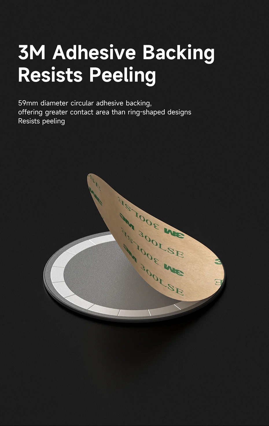 Respaldo adhesivo 3M para una fijación segura:El respaldo adhesivo circular de 59 mm de diámetro proporciona un área de contacto mayor que los diseños en forma de anillo, evitando que se desprenda.
