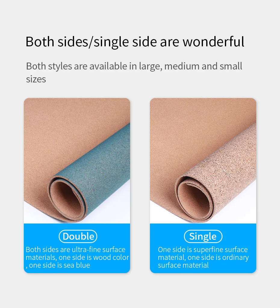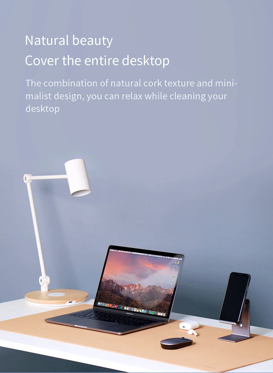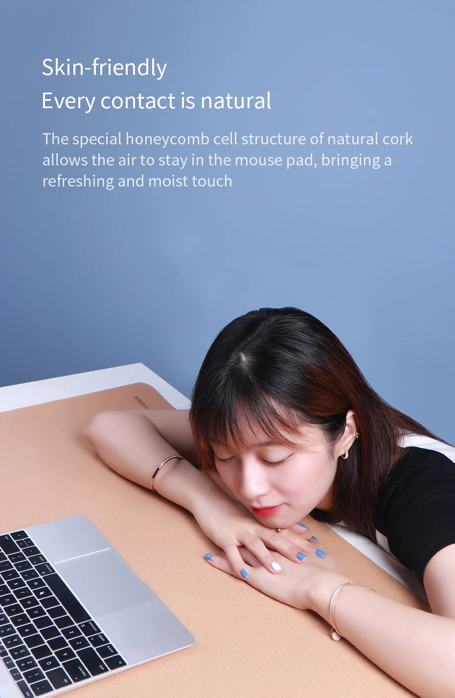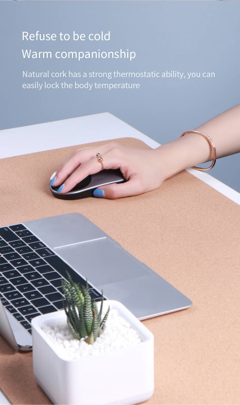 La combinación de textura de corcho natural y diseño minimalista no solo puede limpiar la mesa, sino también relajar el estado de ánimo y brindar una experiencia cómoda. El corcho natural permite que el aire permanezca en la almohadilla del escritorio, brindando un toque fresco y húmedo. Cada toque es como tocar la naturaleza
