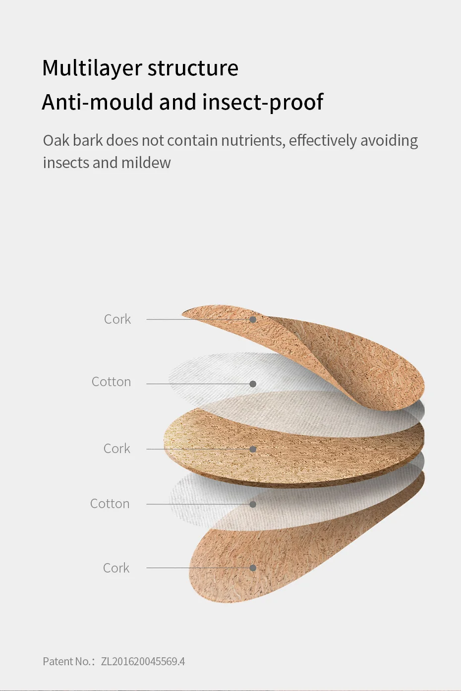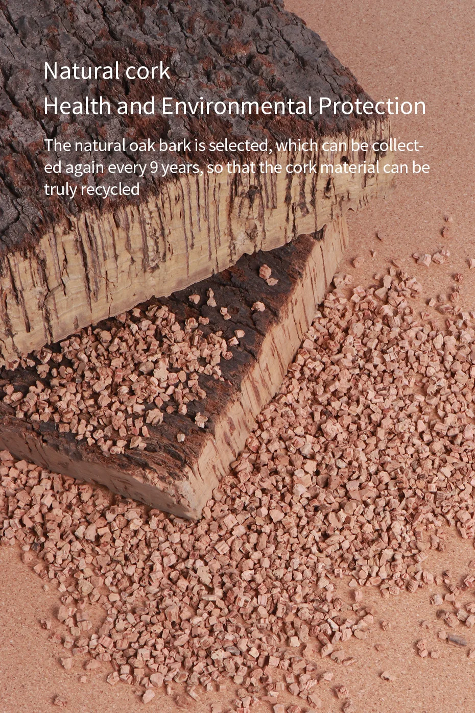 Nueva tecnología patentada, añadiendo capa de algodón flexible en la superficie del corcho. La estructura multicapa permite que el corcho se doble libremente. Flexión aleatoria de múltiples ángulos, el material natural puede alcanzar las mismas propiedades físicas que los productos de plástico