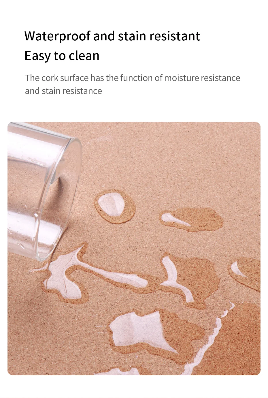Material de corcho, solo use un paño húmedo para limpiarlo, sea casual con bebidas de color oscuro como el café, puede tener manchas si las bebidas se mantienen durante algún tiempo. Nota: No use alcohol ni detergente con alcohol para limpiarloSimplicidad Natural tacto suave: