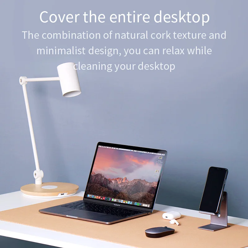 La combinación de textura de corcho natural y diseño minimalista no solo puede limpiar la mesa, sino también relajar el estado de ánimo y brindar una experiencia cómoda. El corcho natural permite que el aire permanezca en la almohadilla del escritorio, brindando un toque fresco y húmedo. Cada toque es como tocar la naturaleza