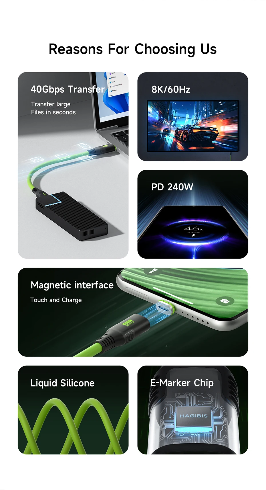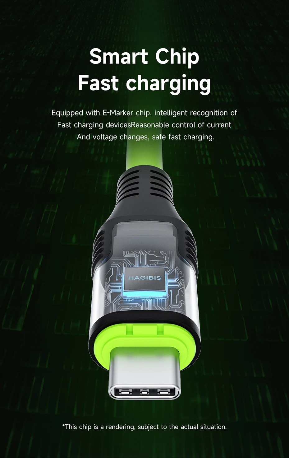 E-Marker Chip:Equipped with E-Marker intelligent chip, it actively recognizes devices, reasonably distributes current and voltage, and protects devices for safe fast charging.
