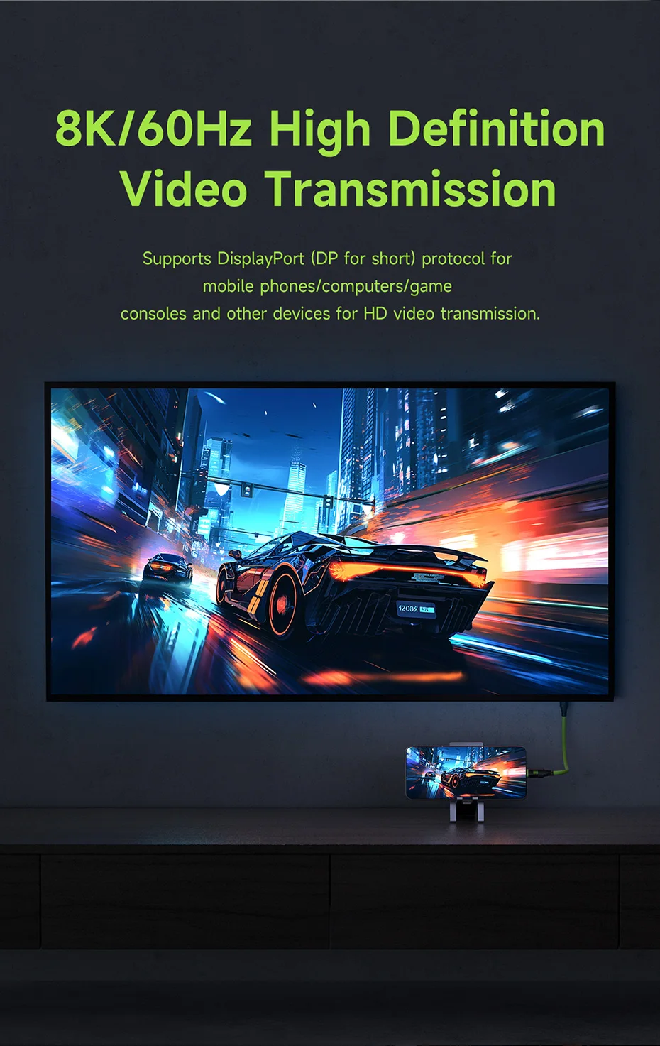 8K 60Hz HD Video:If your phone, computer, tablet, etc. comes with a USB C or Thunderbolt 4/3 port that supports the DisplayPort video protocol, then you can use this Cable for direct HD video transmission.