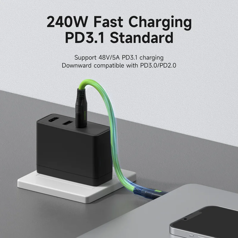 240W Fast Charging:This Cable uses the PD3.1 fast-charging protocol, which supports up to 240W of power transfer, and it's also backward compatible with PD3.0 and 2.0.