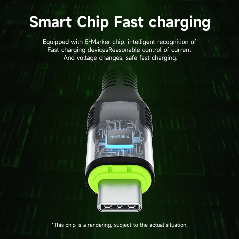 E-Marker Chip:Equipped with E-Marker intelligent chip, it actively recognizes devices, reasonably distributes current and voltage, and protects devices for safe fast charging.