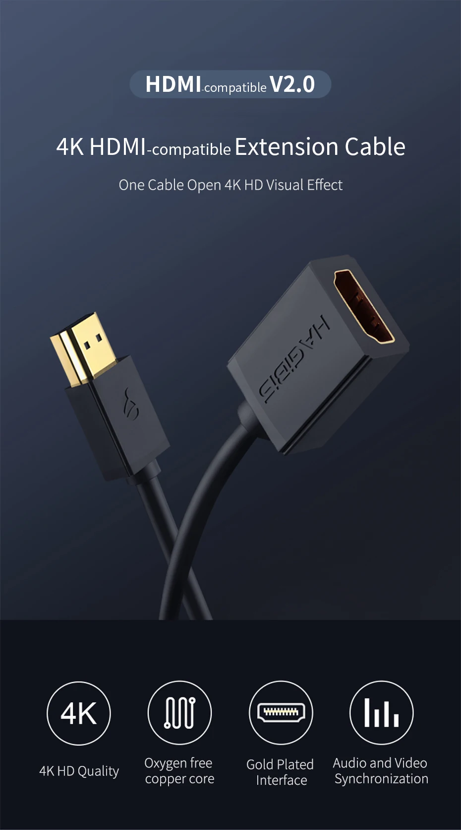 Comprar Hagibis-Cable de extensión compatible con HDMI 4K, extensor macho a hembra 2,0, compatible con HDMI, para ordenador/HDTV/portátil/proyector/PS3/4