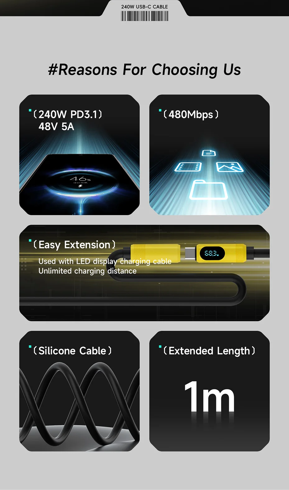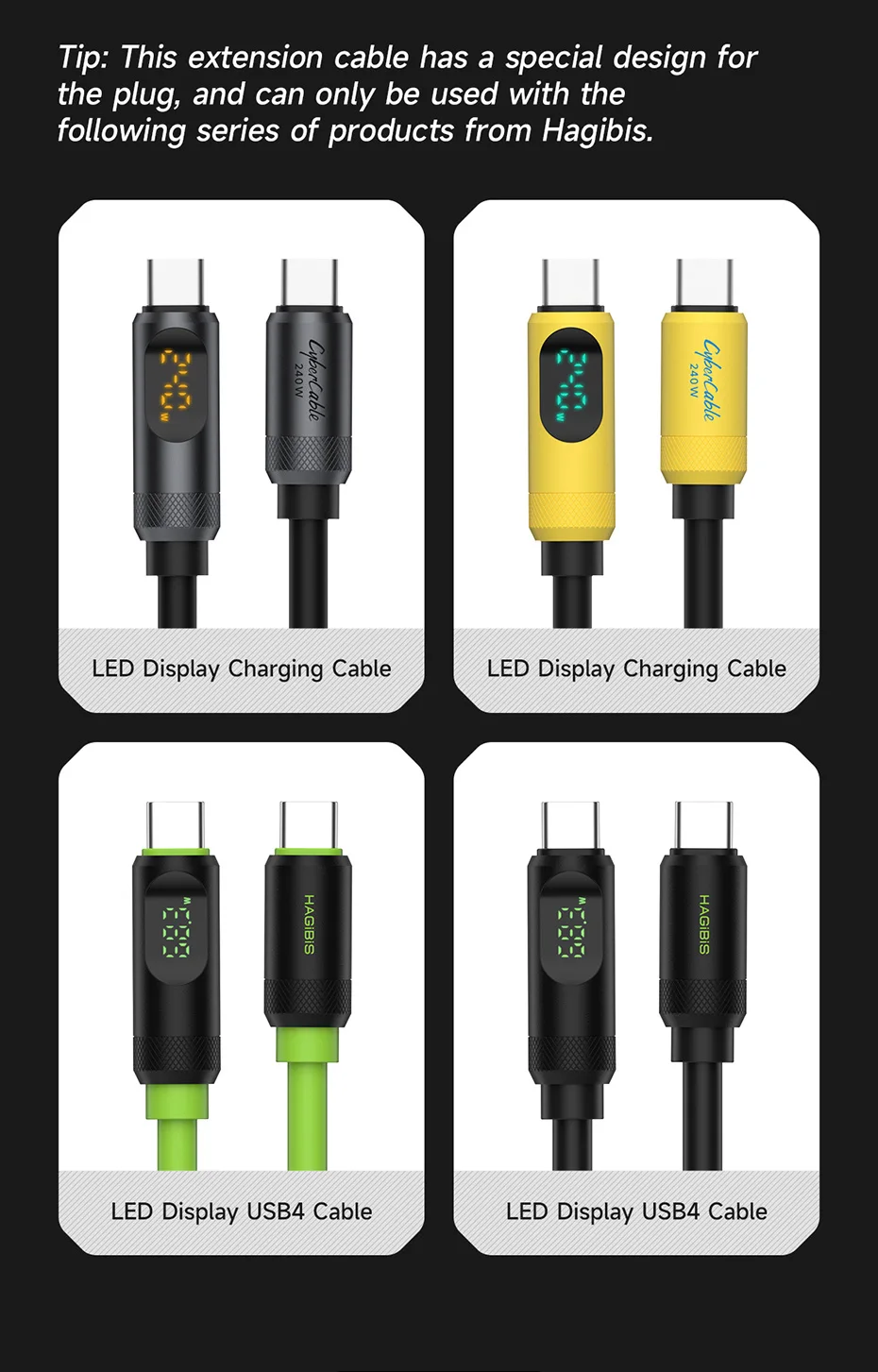*NOTA:El cable de extensión USB C Hagibis SX03SY tiene un diseño especial para el enchufe, solo se puede usar con el cable USB4 de pantalla LED Hagibis SX03 y el cable de carga de pantalla LED Hagibis SX03S.Compre con precaución