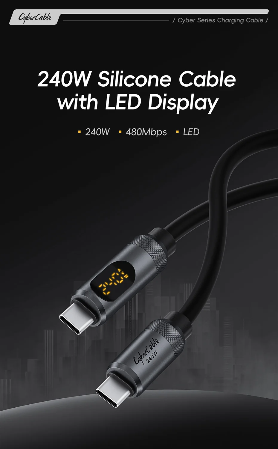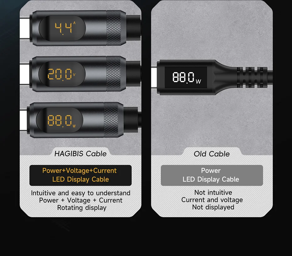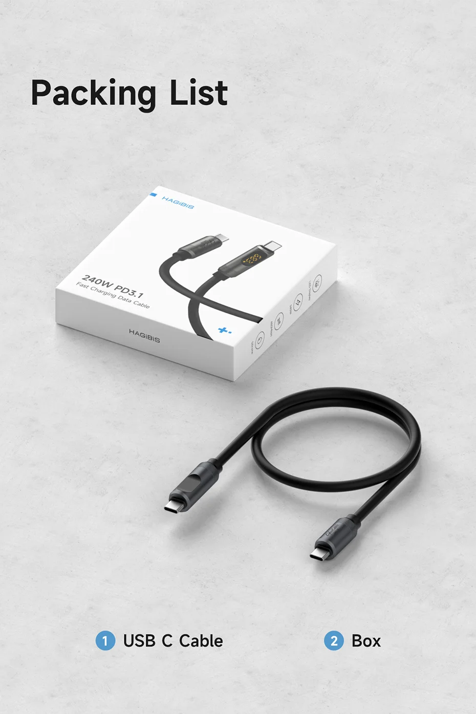 Comprar Hagibis Cable USB C con pantalla LED Cable de carga rápida tipo C a C PD 240W Cable de carga de silicona para iPhone 17 Macbook Pro Air