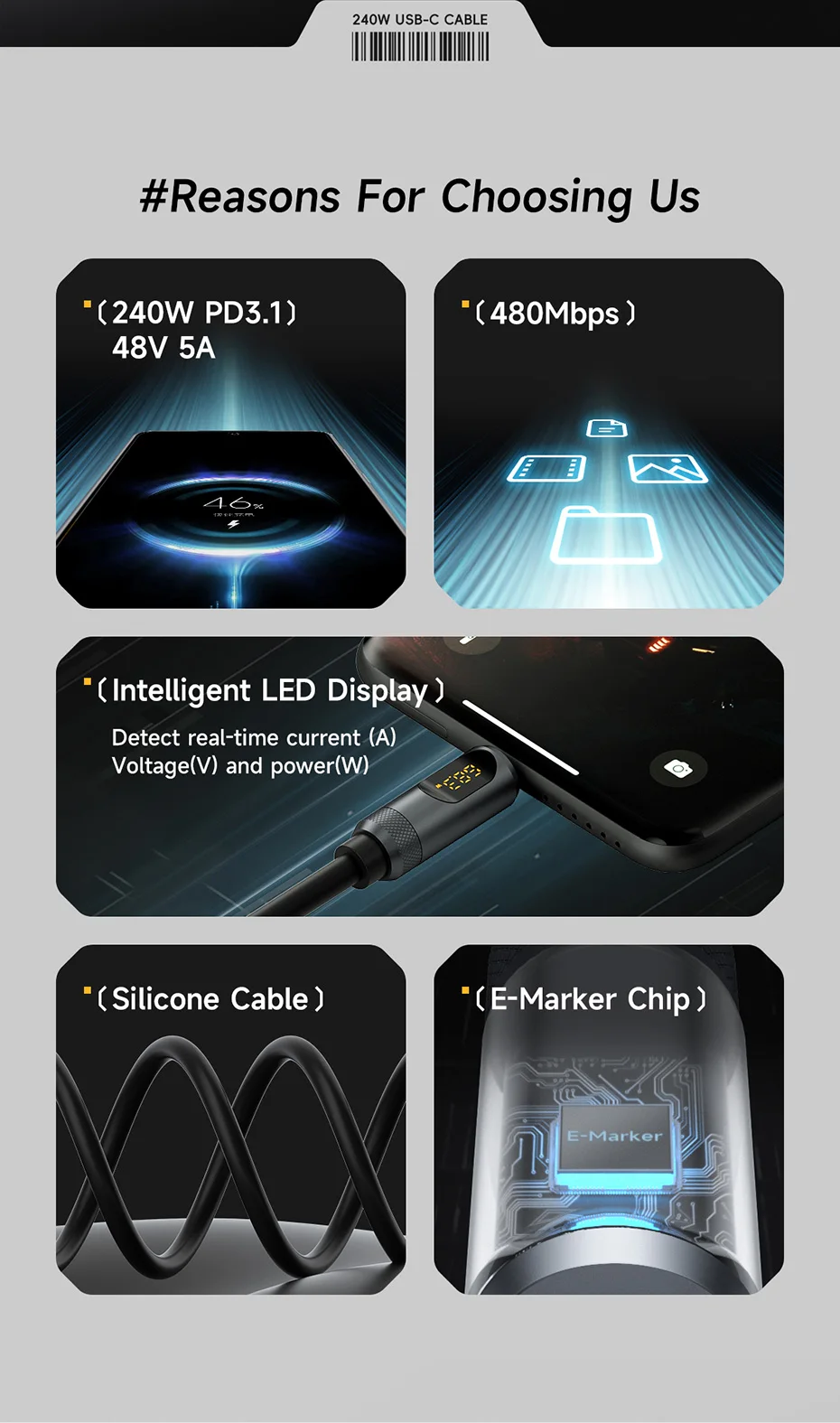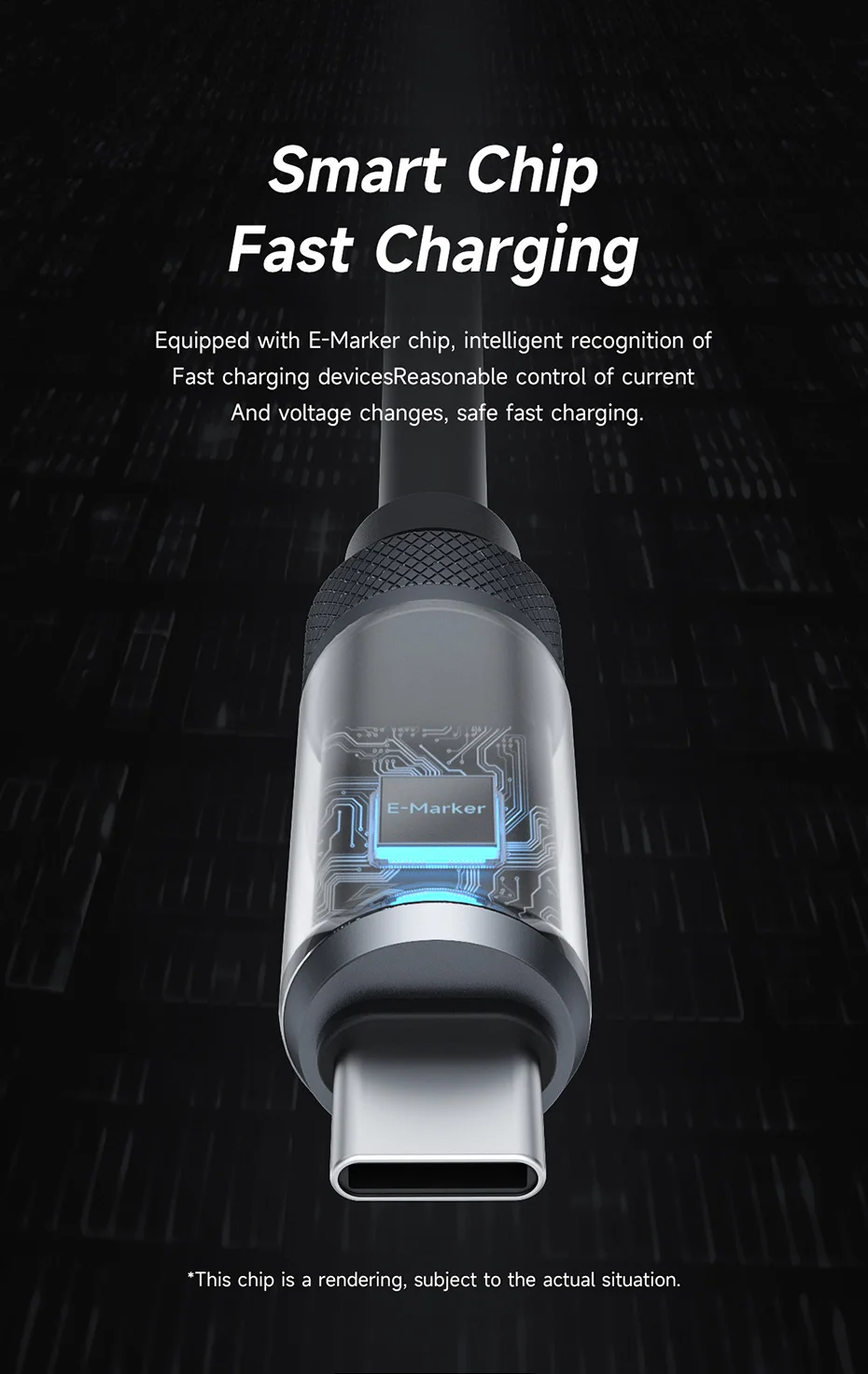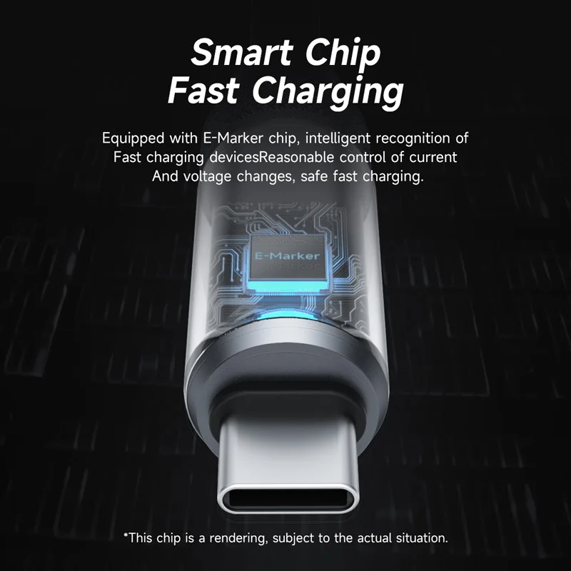 E-Marker chip:Equipped with E-Marker chip, intelligent identification of fast charging devices, reasonable control of current and voltage changes, safe fast charging