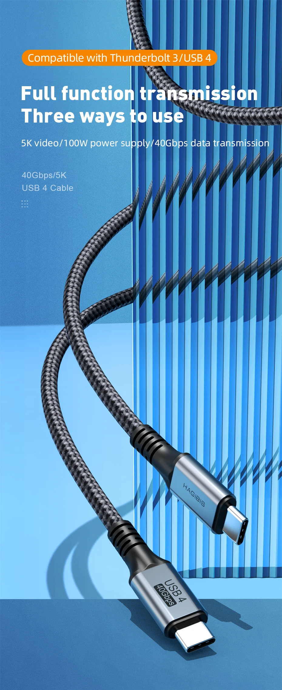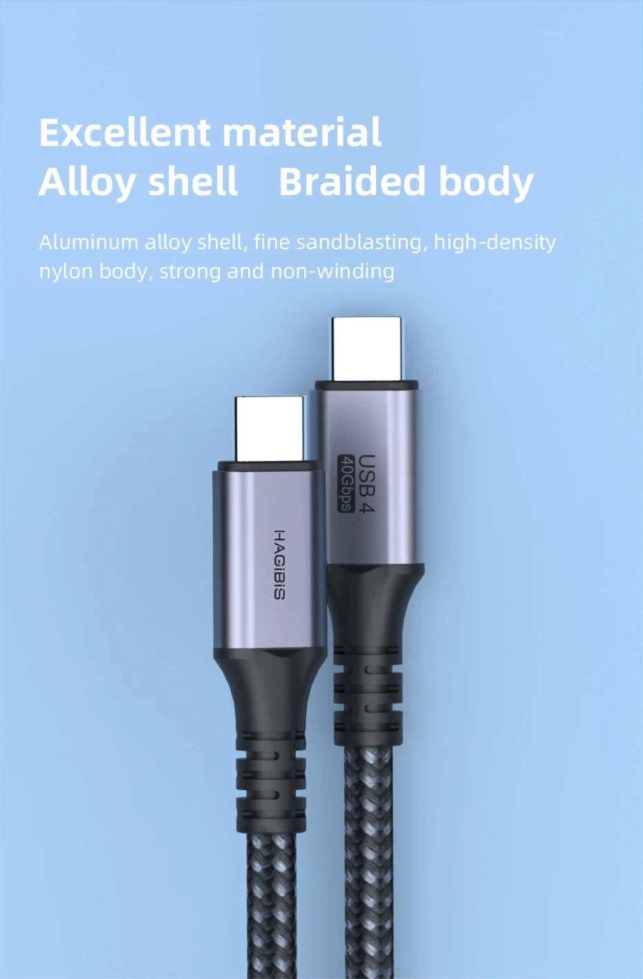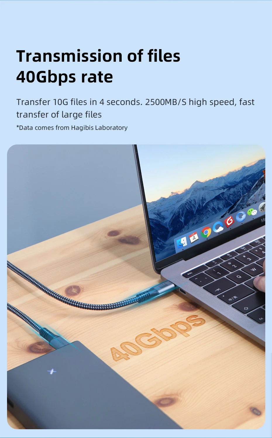 100W Power Delivery: Hagibis USB 4 cable up to 20V/5A 100W charging compatibility, 8x faster than standard USB-C cables. It lets you keep your thunderbolt 3 devices powered without needing an additional power supply