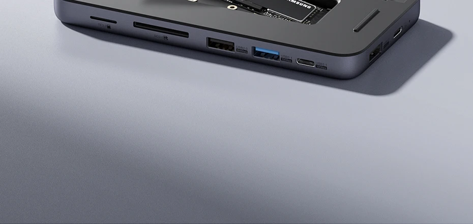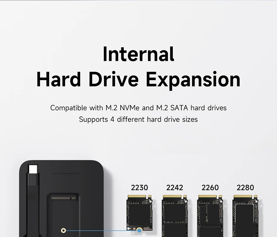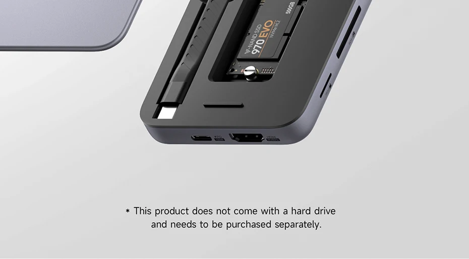 【Estación de acoplamiento con carcasa SSD】No es solo una estación de acoplamiento de interfaz USB C, sino también una carcasa M.2 NVMe/SATA SSD, que puede admitir 2230, 2242, 2260, 2280 SSD de cuatro especificaciones, compatible con la tecla M, interfaz de tecla B & M, no es compatible con tecla B. Nota: el producto en sí no viene con SSD