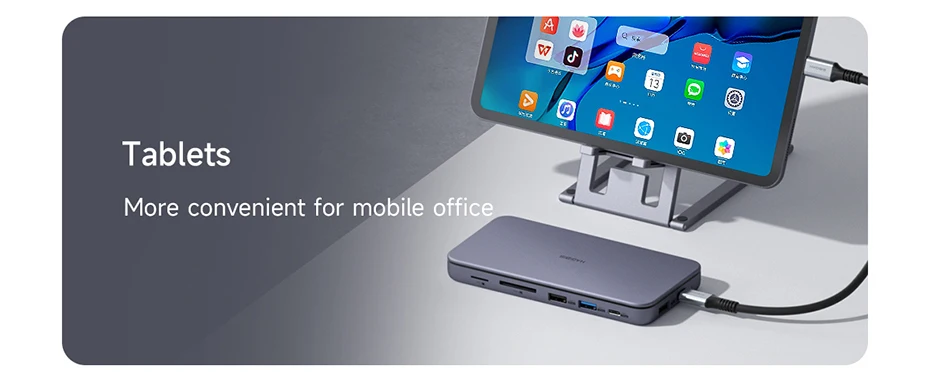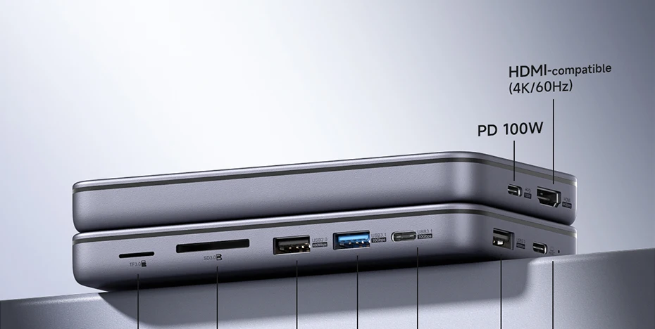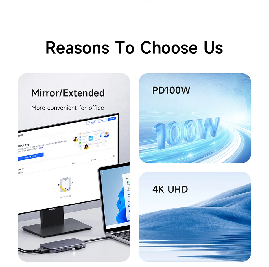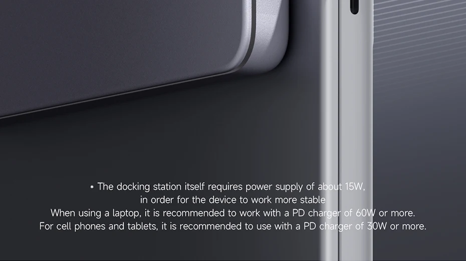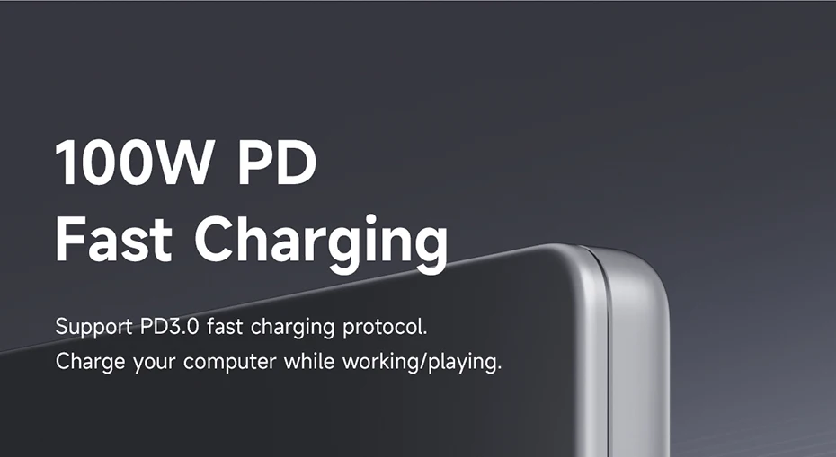 【 Entrega de potencia de 100W PARA EL año】Este puerto se utiliza para conectar un cargador PD externo que admite el protocolo de carga rápida PD3.0, manteniendo la estación de acoplamiento funcionando de manera estable mientras carga su dispositivo rápidamente