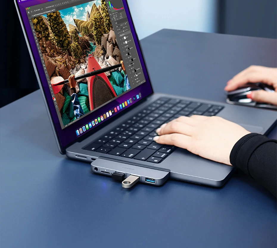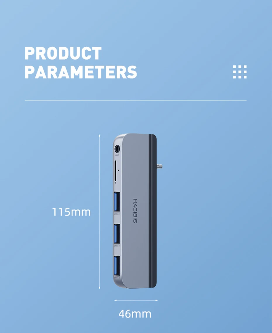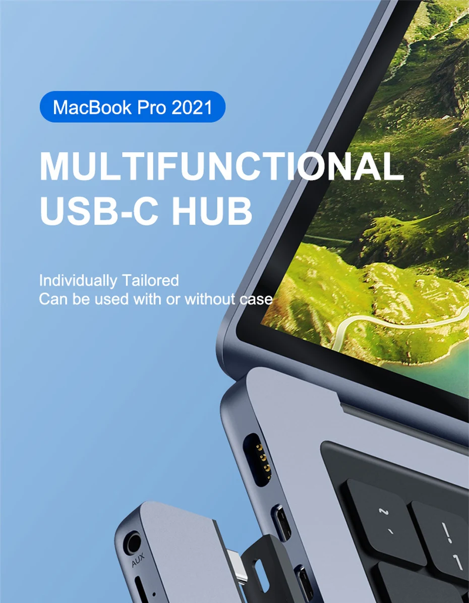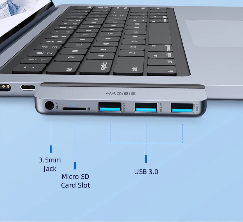 Comprar Hagibis-concentrador USB tipo C para Macbook Pro, estación de acoplamiento con adaptador USB 3,0, Micro SD, Puerto auxiliar de 3,5mm, 14/16 pulgadas, M1, M2