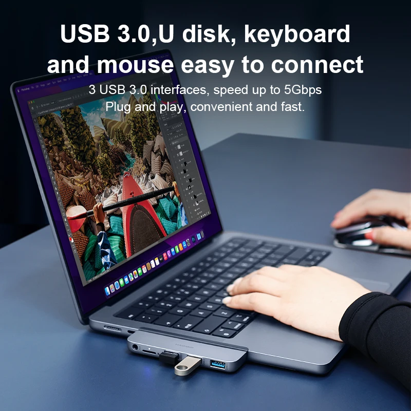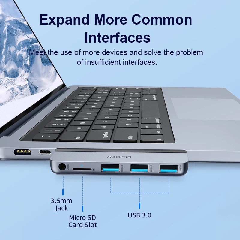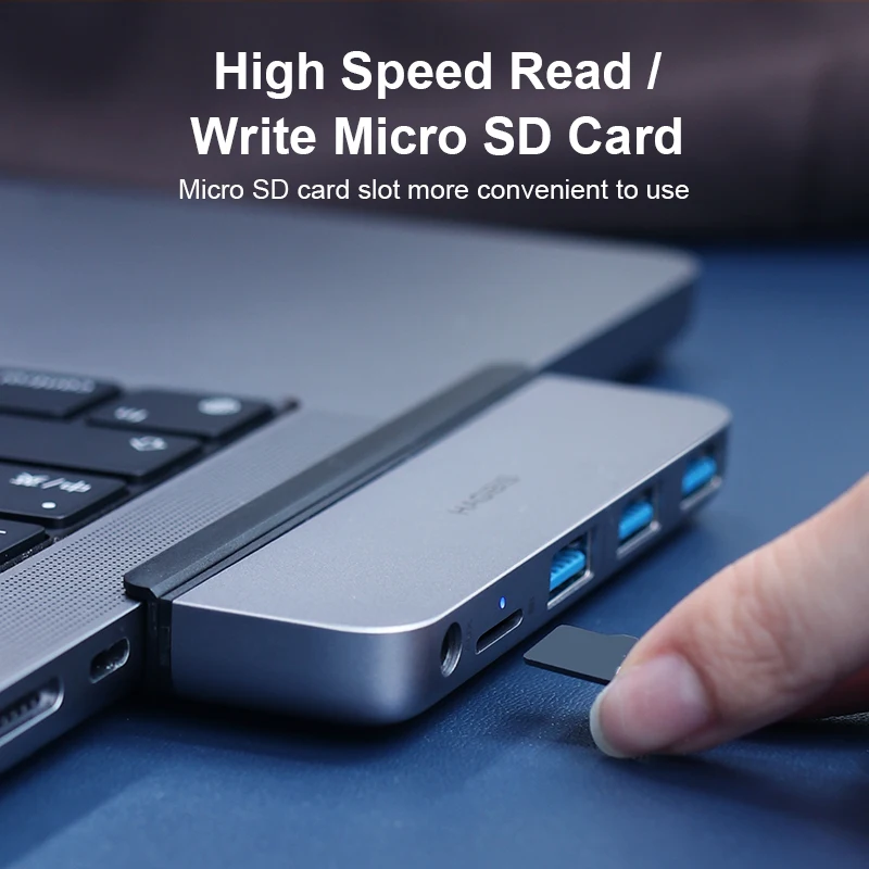 Comprar Hagibis-concentrador USB tipo C para Macbook Pro, estación de acoplamiento con adaptador USB 3,0, Micro SD, Puerto auxiliar de 3,5mm, 14/16 pulgadas, M1, M2