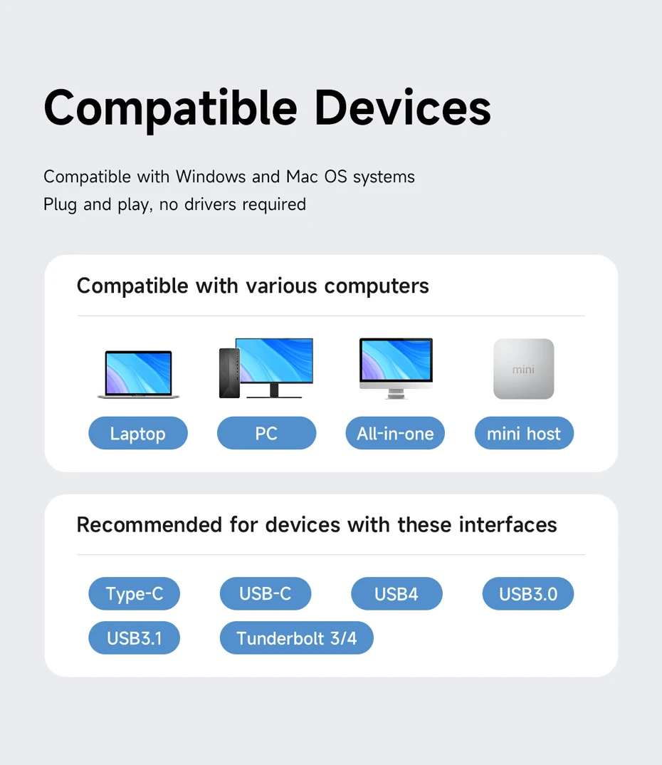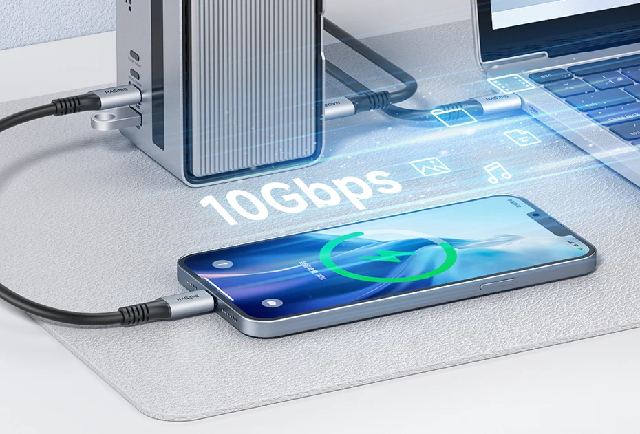 Transmisión de alta velocidad:Los puertos USB C y USB 3.1 de esta docking station se pueden conectar a una variedad de dispositivos externos con velocidades de transmisión de hasta 10 Gbps.