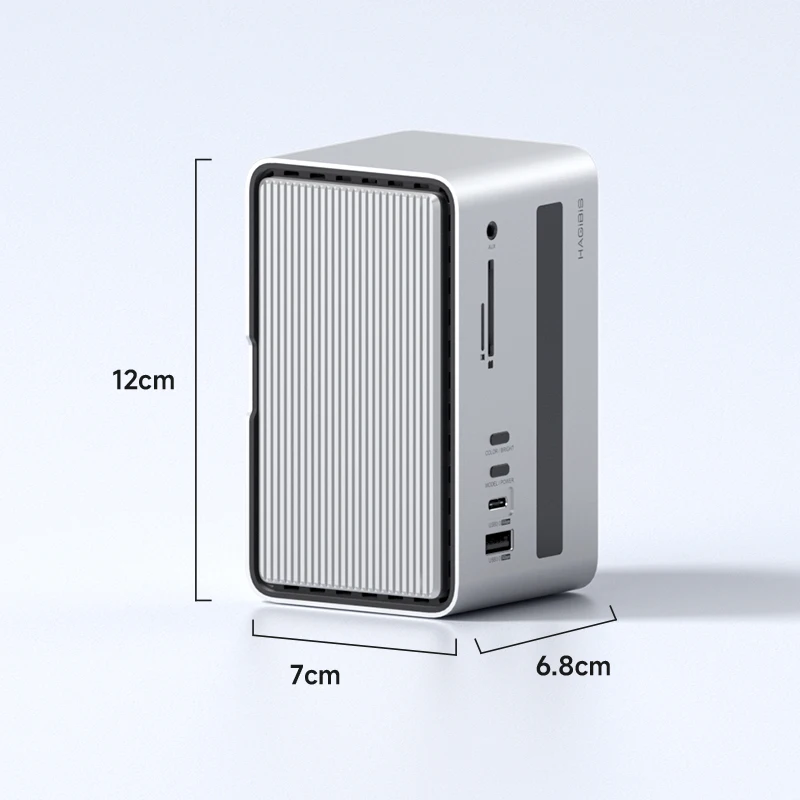 Estación de acoplamiento USB-C integrada única:Hagibis innovó y desarrolló este concentrador USB C de tira de luz LED RGB, que integra una estación de acoplamiento, una carcasa de disco duro, una tira de luz LED y una caja de almacenamiento de tarjeta SD, hace que su estación de acoplamiento sea diferente del resto y agrega color a su escritorio