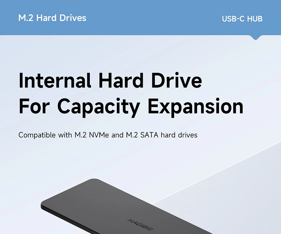 Actualización de almacenamiento ultrarrápida:Adaptador de caja de disco duro Hagibis tipo C a M.2 NVMe SATA compatible con los protocolos M.2 SSD PCIe Gen3x4 para ampliar el espacio digital para su ordenador portátil y tableta. La ranura NVMe/SATA ampliable es perfecta para insertar una actualización ultrarrápida, hacer copias de seguridad o transferir todo su vídeo, música, fotografía u otros archivos grandes [Depende del modelo de disco duro NVME/SATA M.2]. Compatible con discos duros M.2 NVMe y M.2 SATA