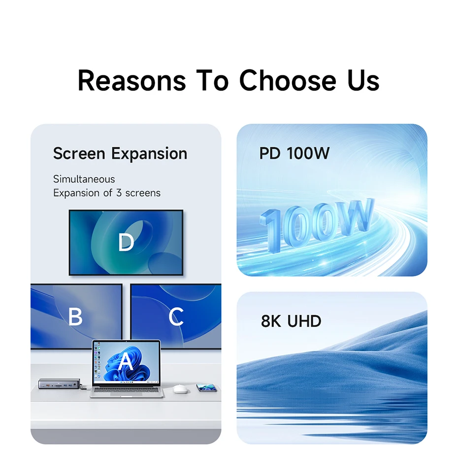 Comprar Hagibis-estación de acoplamiento USB tipo C a 8K DP, pantalla Triple Compatible con HDMI, M.2, SSD, PD3.0, RJ45, 15 en 1, HUB USB C para PC y portátiles