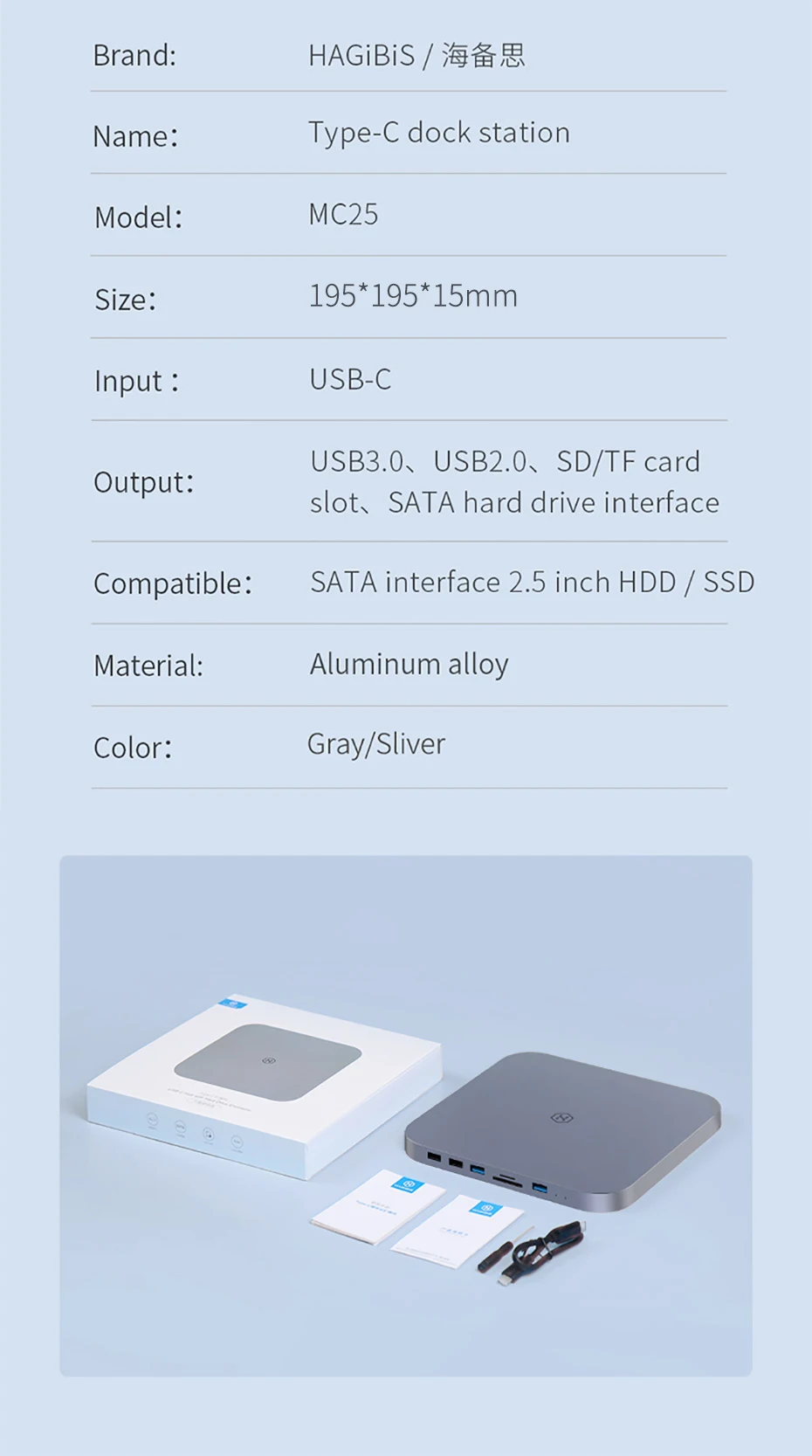 Comprar Hagibis-Hub USB C con carcasa de disco duro, estación de acoplamiento tipo C para Mac mini con 2,5 SATA NVME M.2, SSD, DP USB3.0 M1/M2