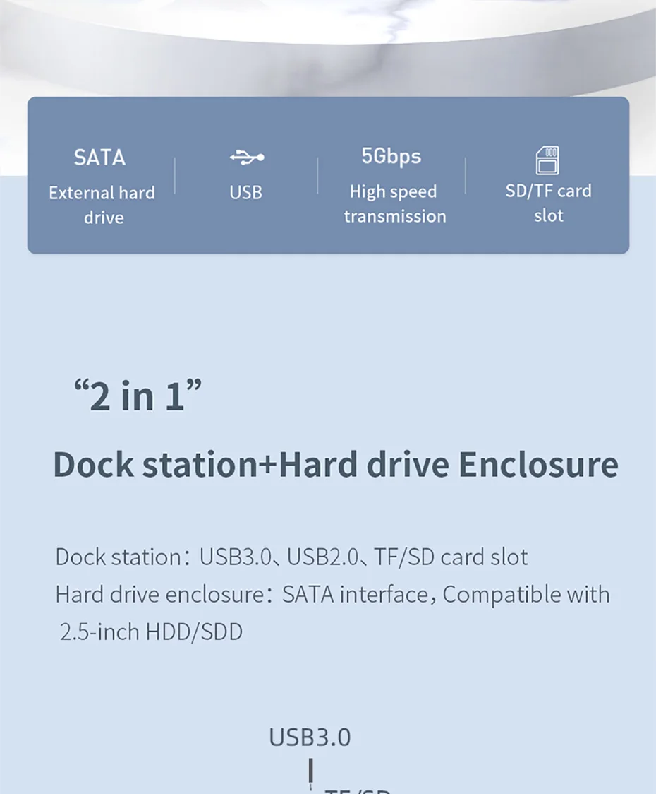 Concentrador de disco duro y carcasa de disco duro de 2 en 1:Diseño único, todo utiliza un cable de conexión de la red de cable,