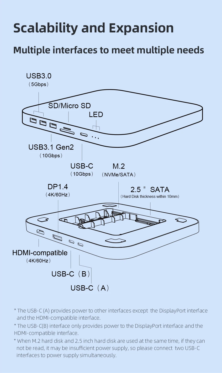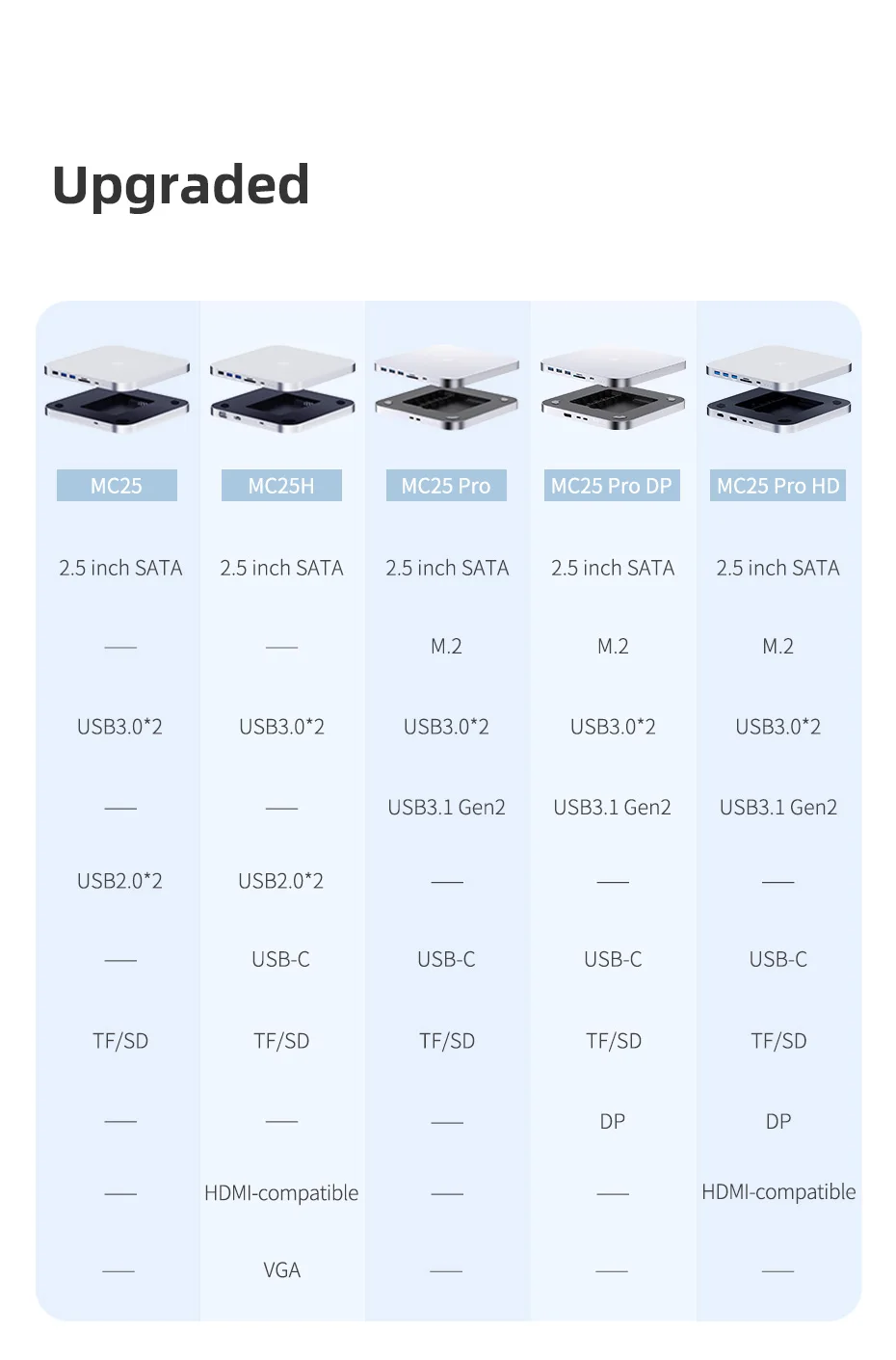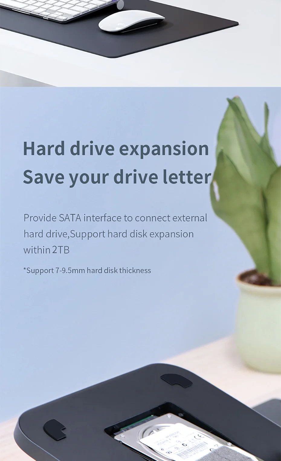 Aumentar la memoria del disco duro:Interfaz SATA, compatible con disco duro mecánico/SSD de 2,5 pulgadas, admite grosor de disco duro dentro de 10mm