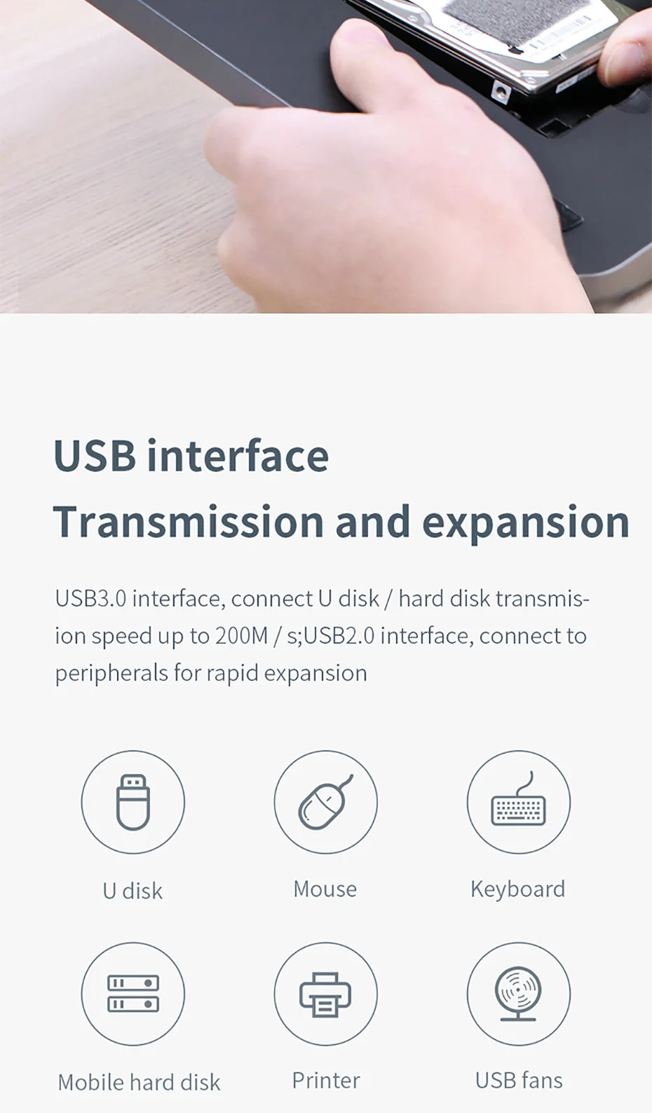 La interfaz USB puede transferir y expandir:La velocidad de transmisión de conectar el disco U/disco duro puede ser de hasta 200 M/s