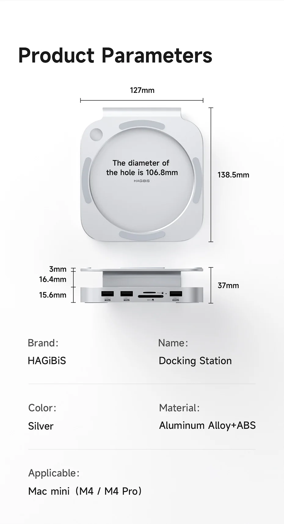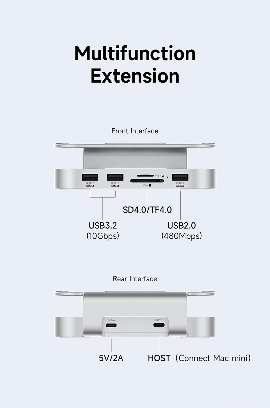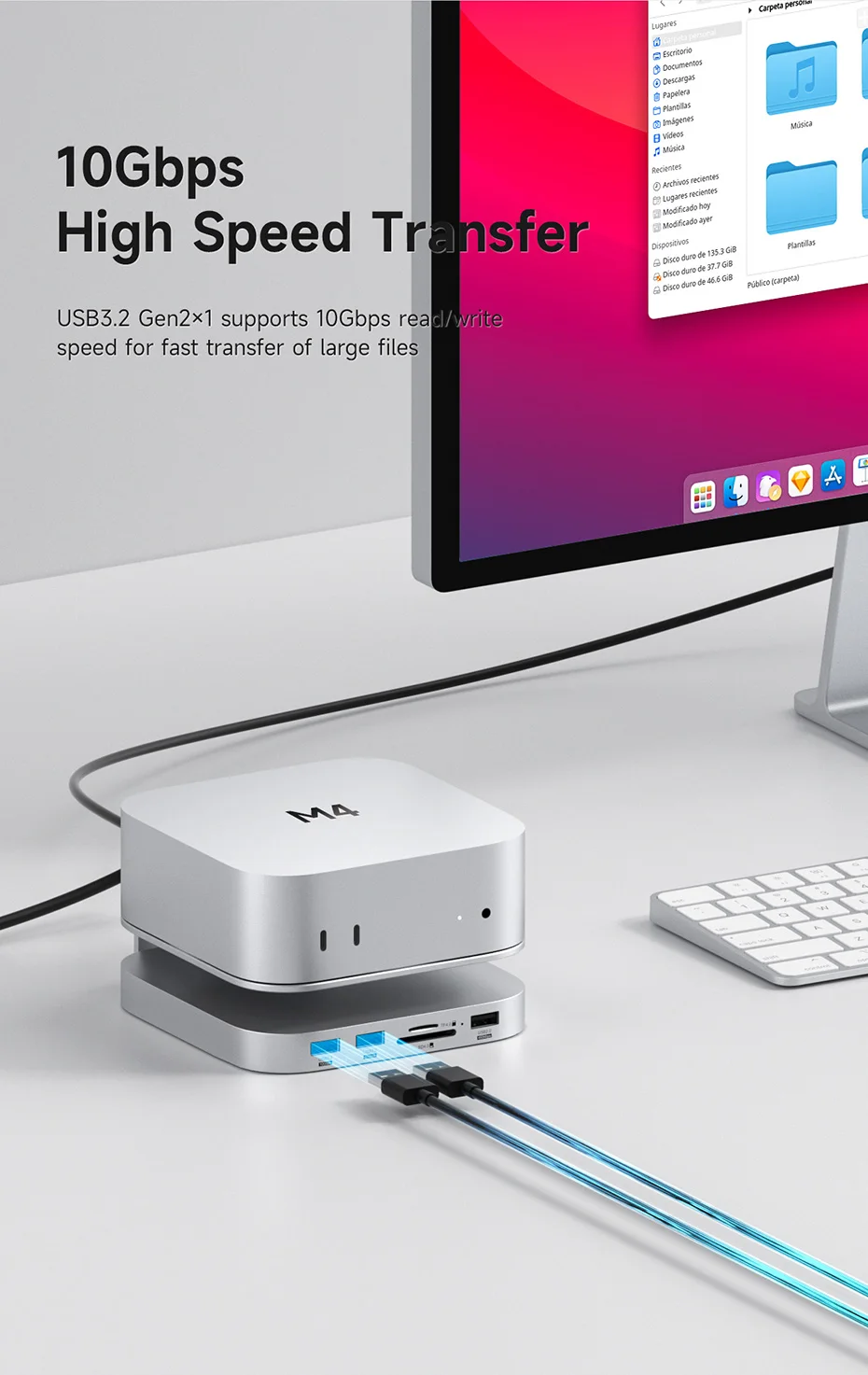 Buen compañero para Apple 2024 Mac Mini M4/M4 Pro: Hagibis Hub tiene múltiples interfaces para satisfacer múltiples necesidades.Mismo tamaño, material de aleación, plug and play, ligero, sólido, disipación de calor rápida, más adecuado para su Mac Mini M4/M4 Pro 2024