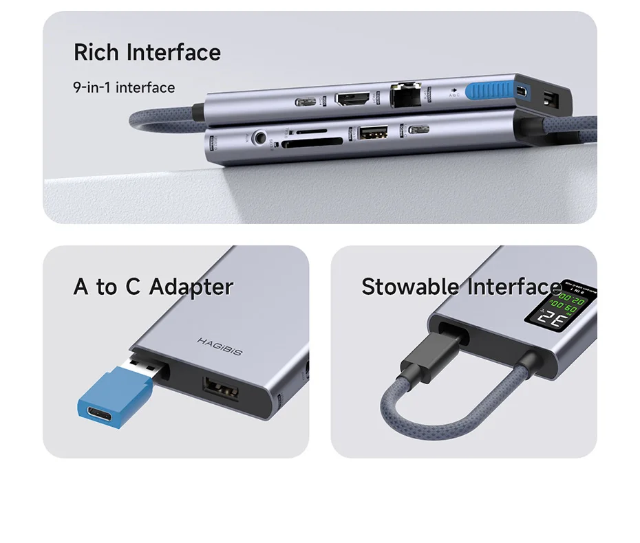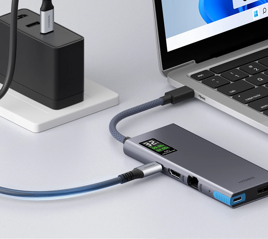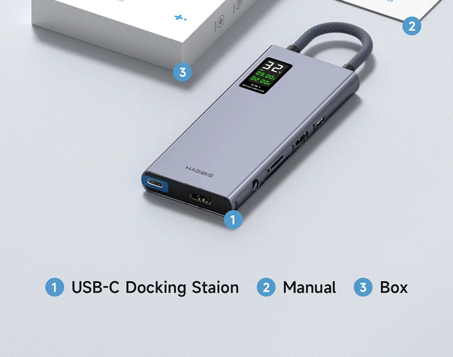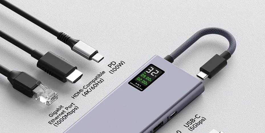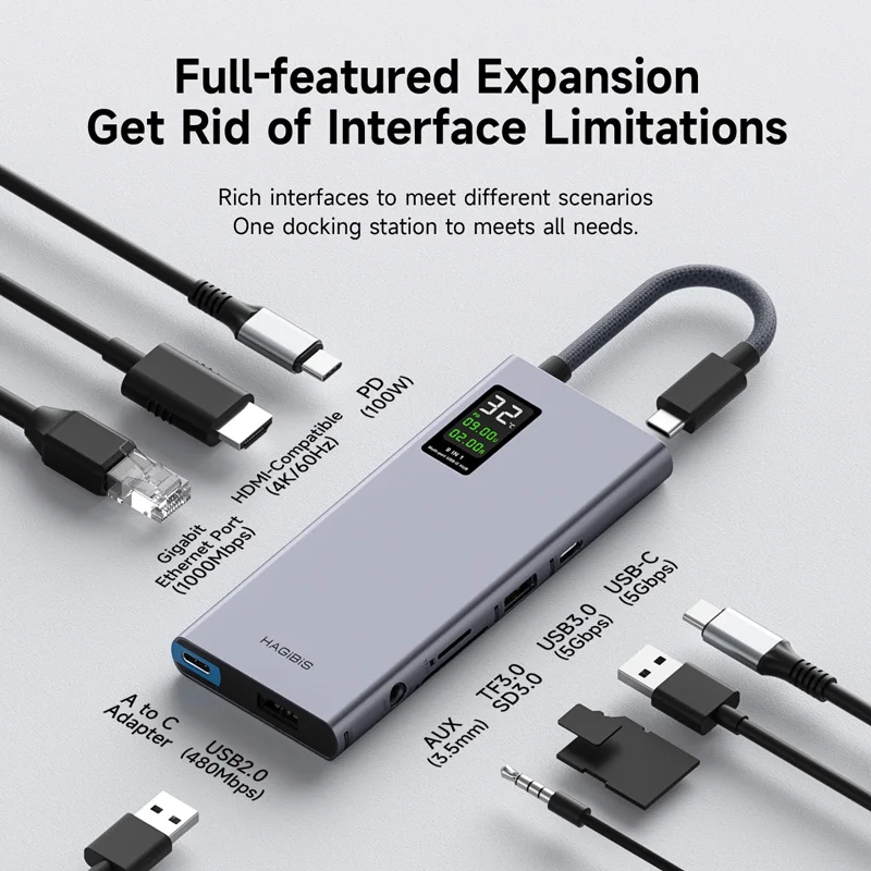 Comprar Hagibis-Hub USB C con pantalla LCD, adaptador multipuerto tipo C, 4K, Compatible con HDMI, 100W, PD, Gigabit Ethernet, para Macbook Pro, iPad, HP