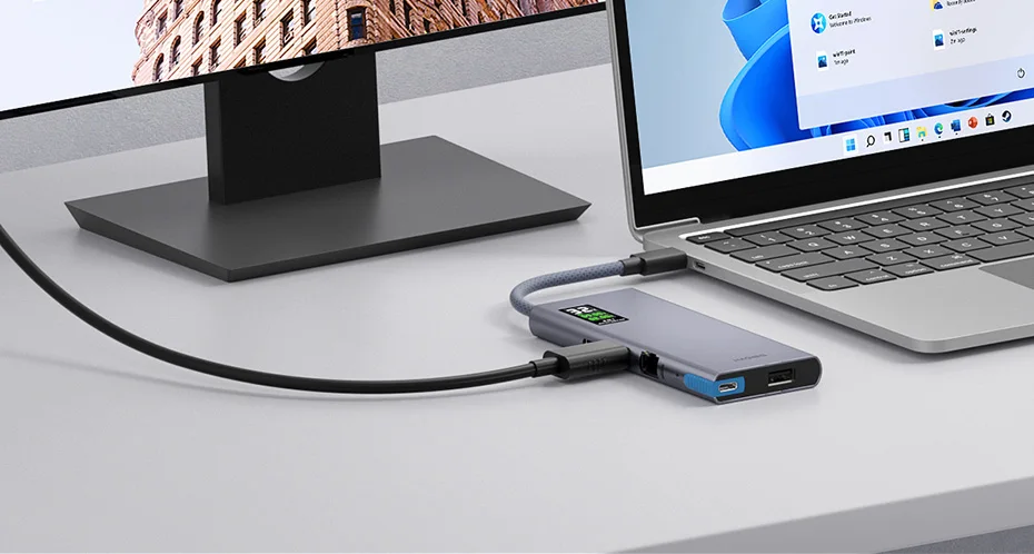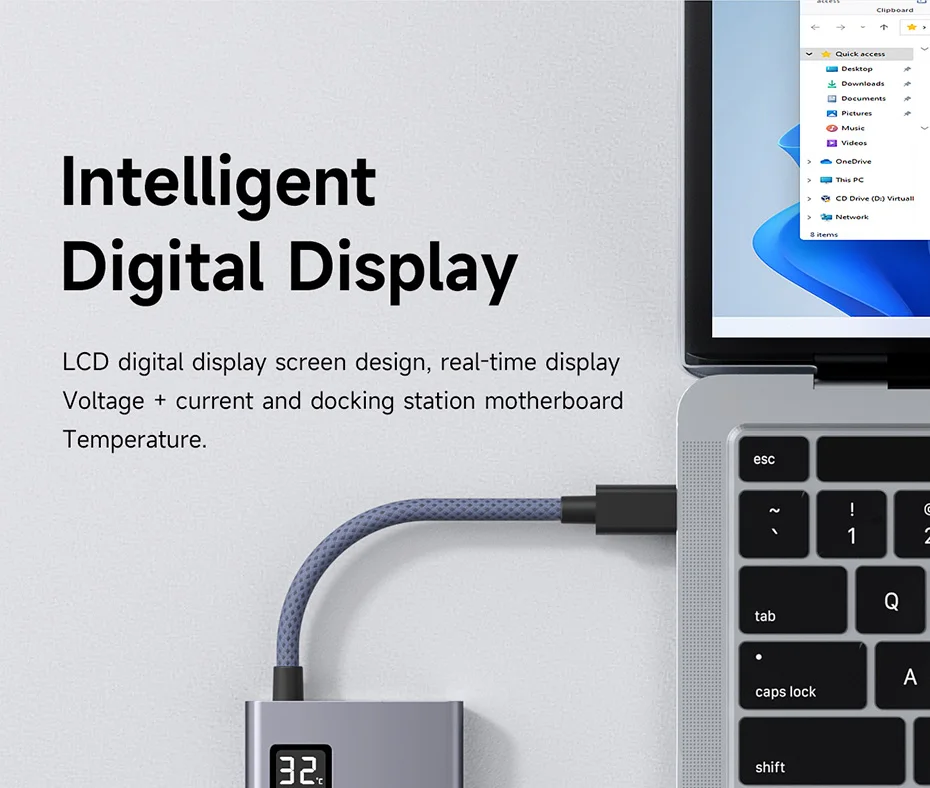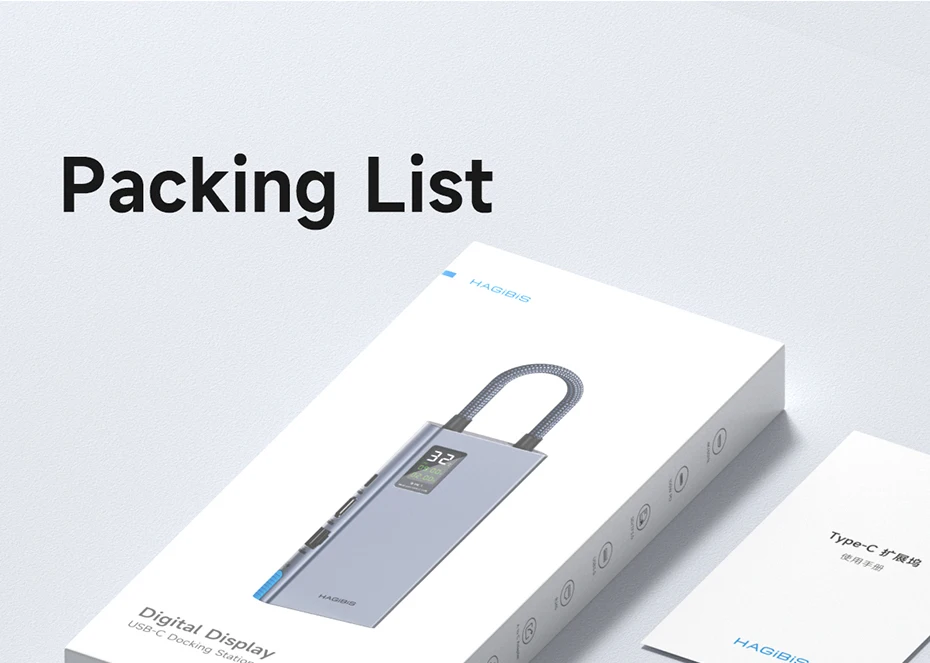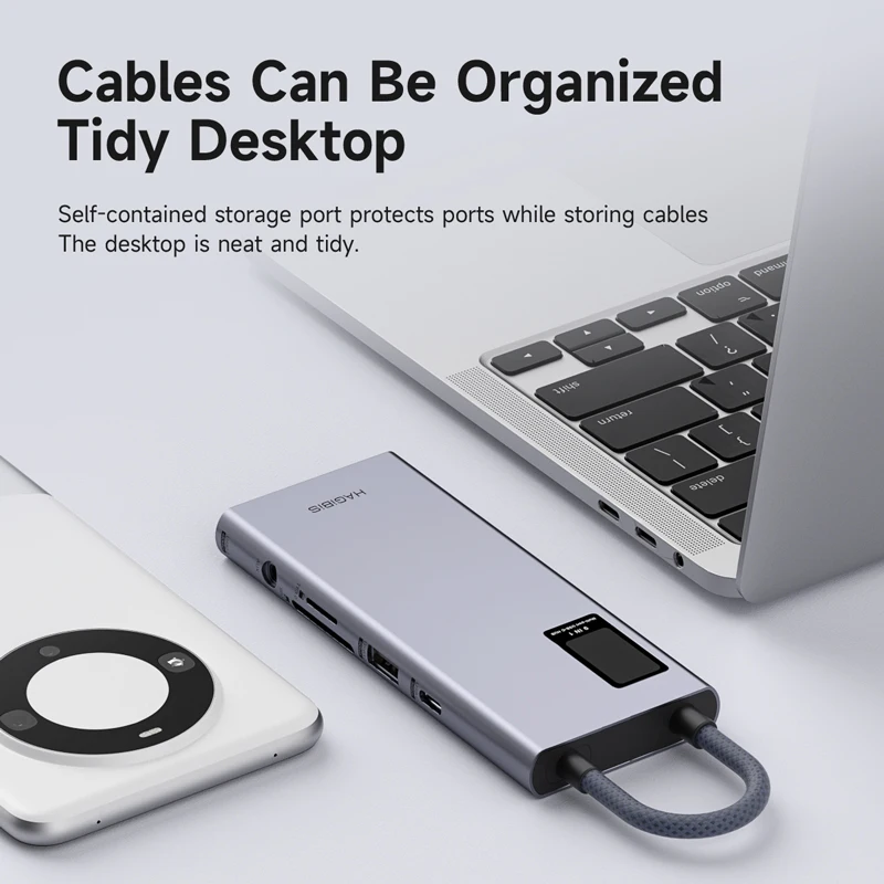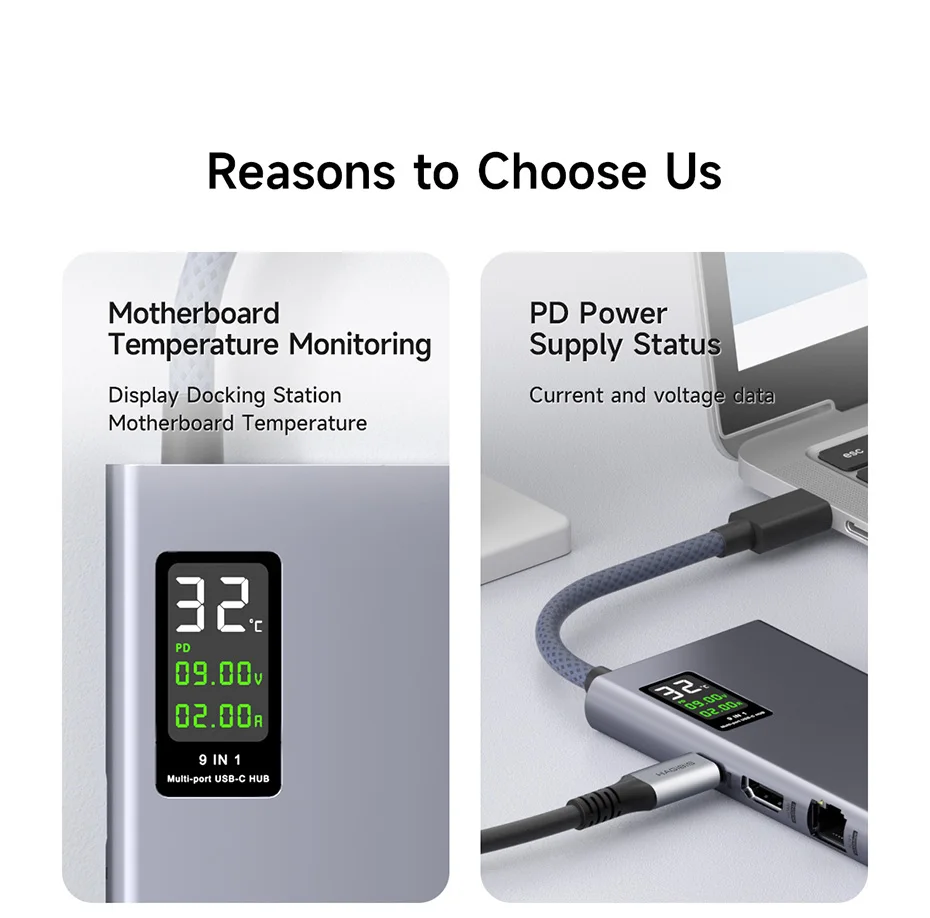 Comprar Hagibis-Hub USB C con pantalla LCD, adaptador multipuerto tipo C, 4K, Compatible con HDMI, 100W, PD, Gigabit Ethernet, para Macbook Pro, iPad, HP