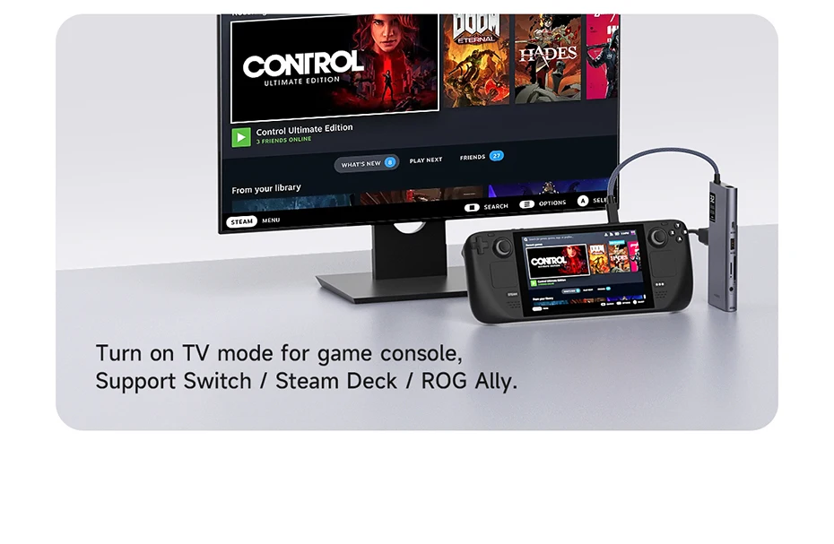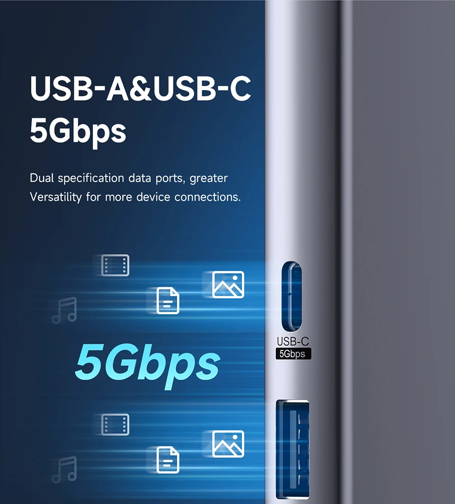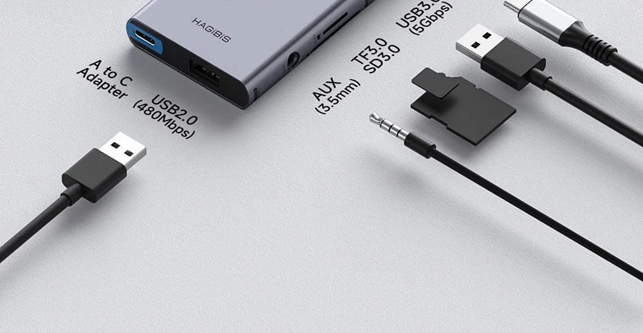 Servicio íntimo:El puerto USB C conectado a la computadora host se puede almacenar, ahorrando espacio de manera efectiva y reduciendo el riesgo de sufrir daños.Además, hemos agregado un adaptador USB-A compatible, que puede ser compatible con más dispositivos.