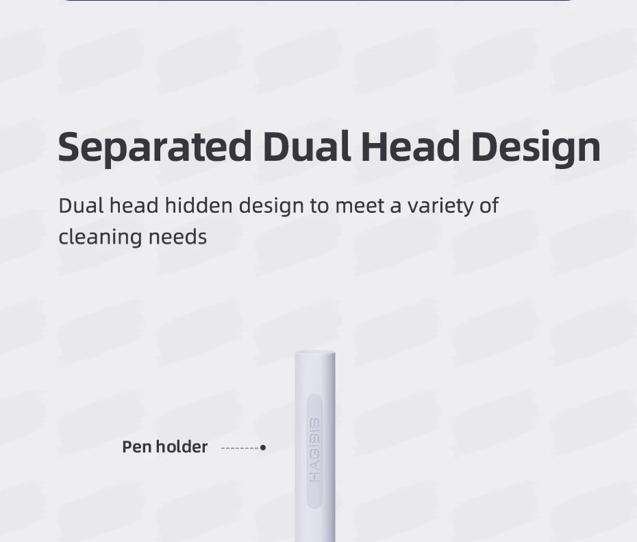 Diseño de doble cabezal separado:Hagibis kit de limpieza de auriculares 3 en 1 con esponja flocada, cepillo de alta densidad y Punta de bolígrafo de Metal, diseño oculto de doble cabeza para satisfacer una variedad de necesidades de limpieza