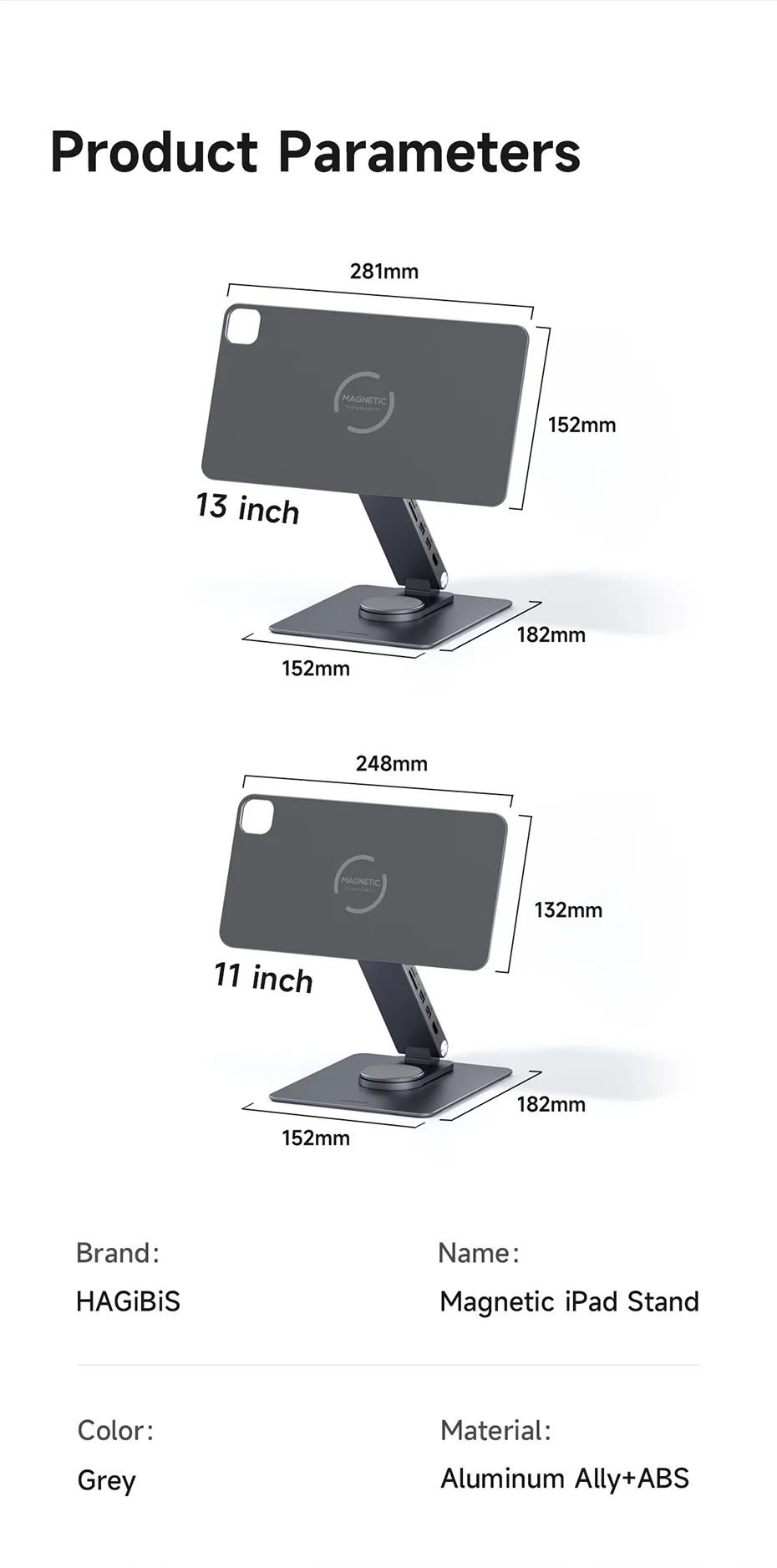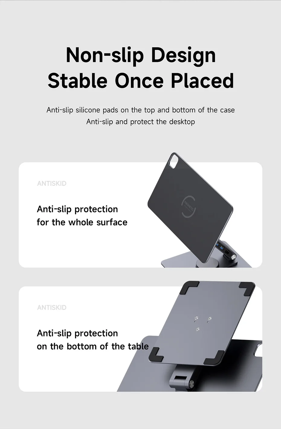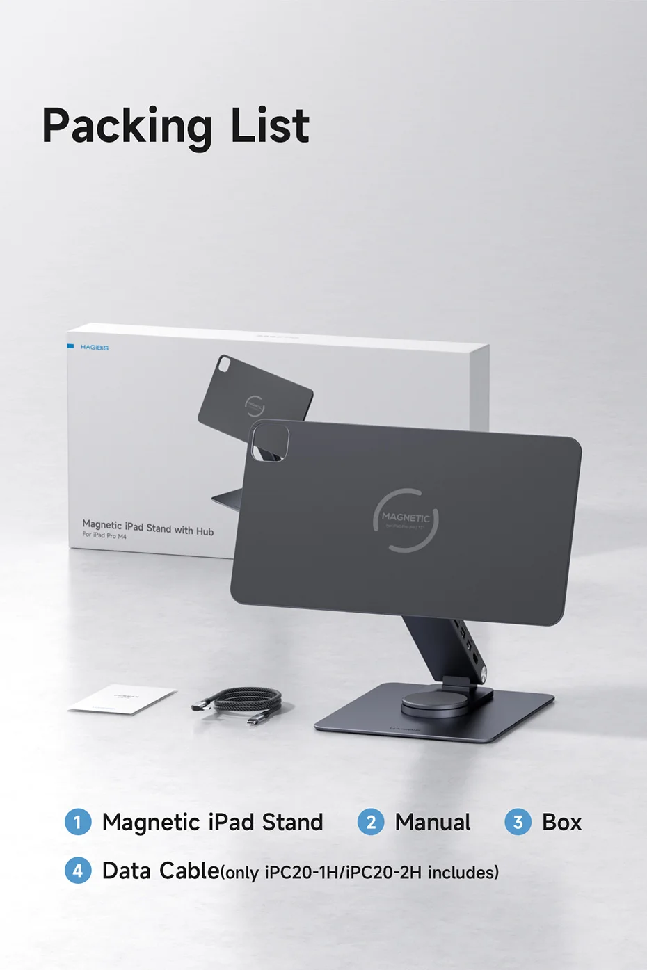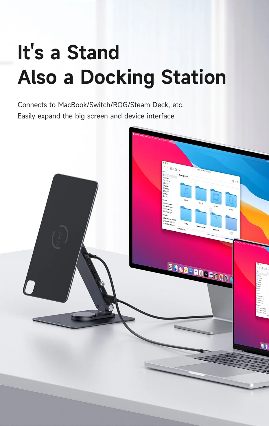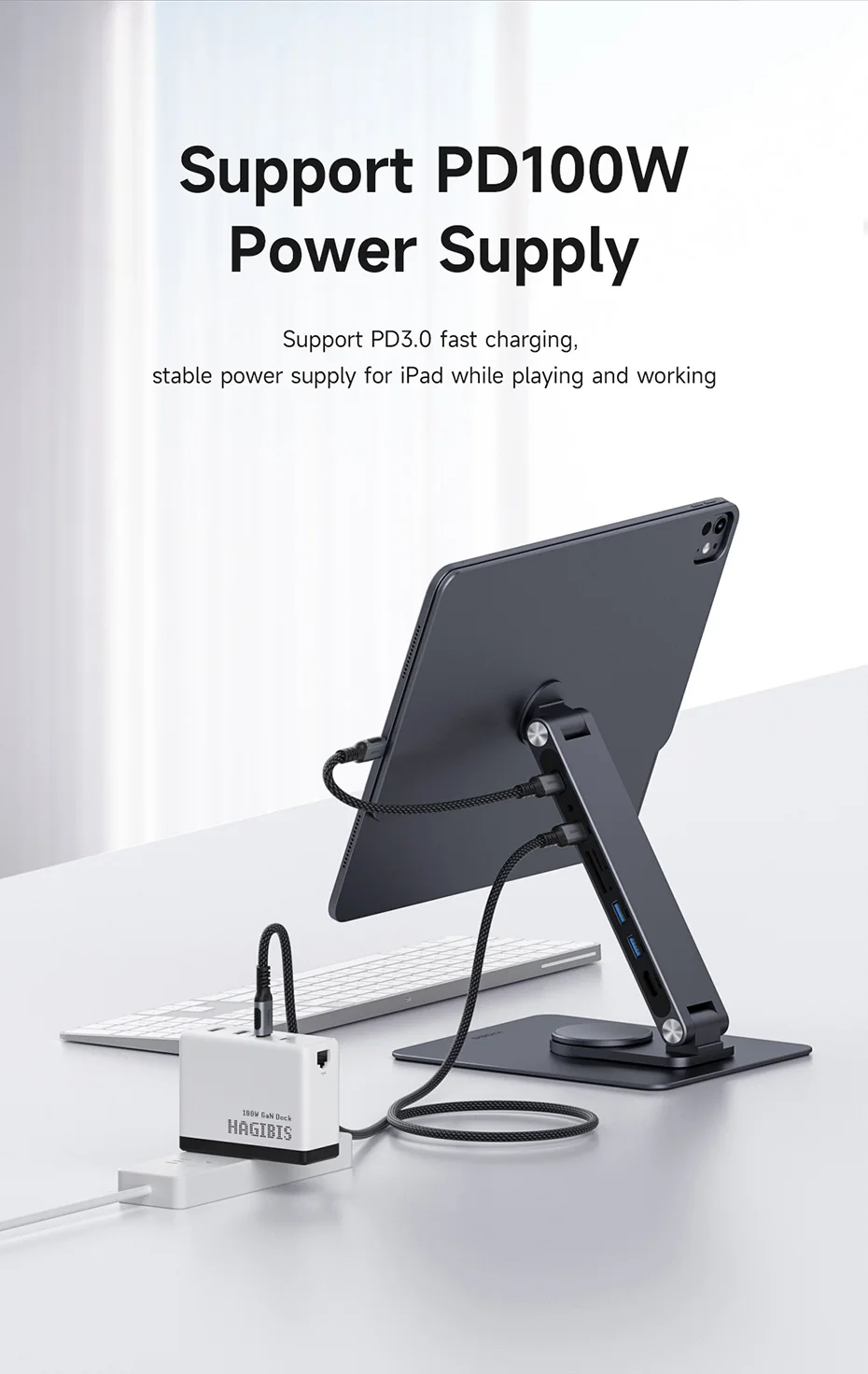 Comprar Hagibis-soporte magnético para iPad Pro M4 2024, 11 pulgadas, 13 pulgadas, con estación de acoplamiento para tableta Hub, montaje ajustable de 360 °, soporte plegable