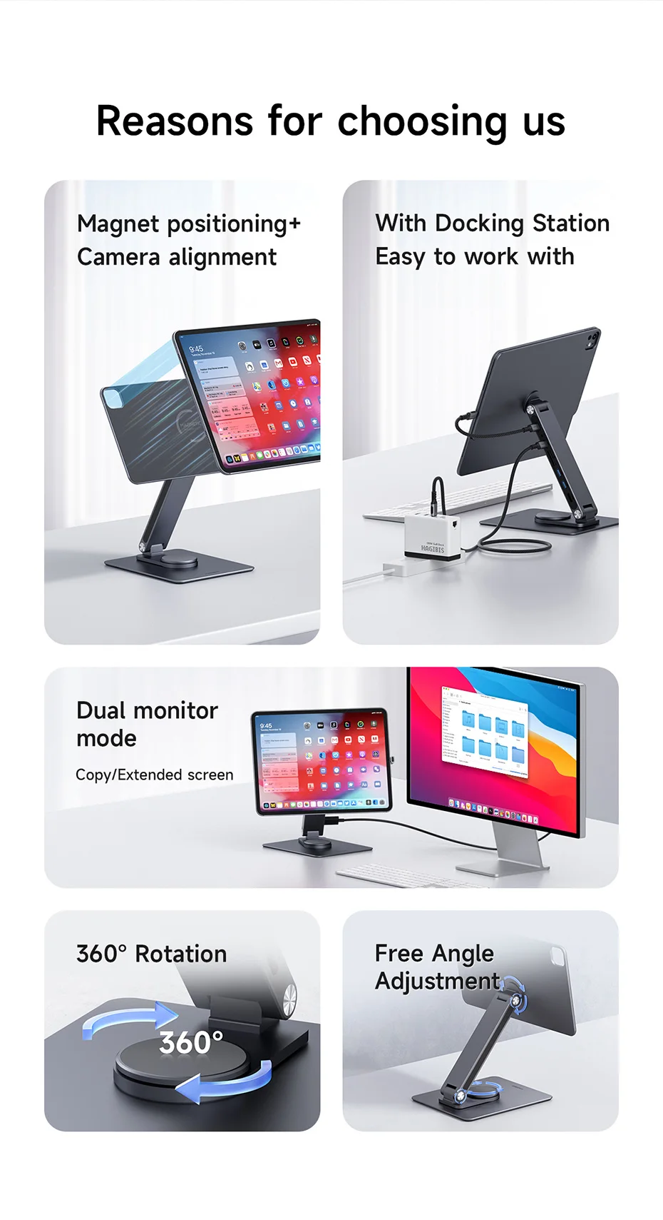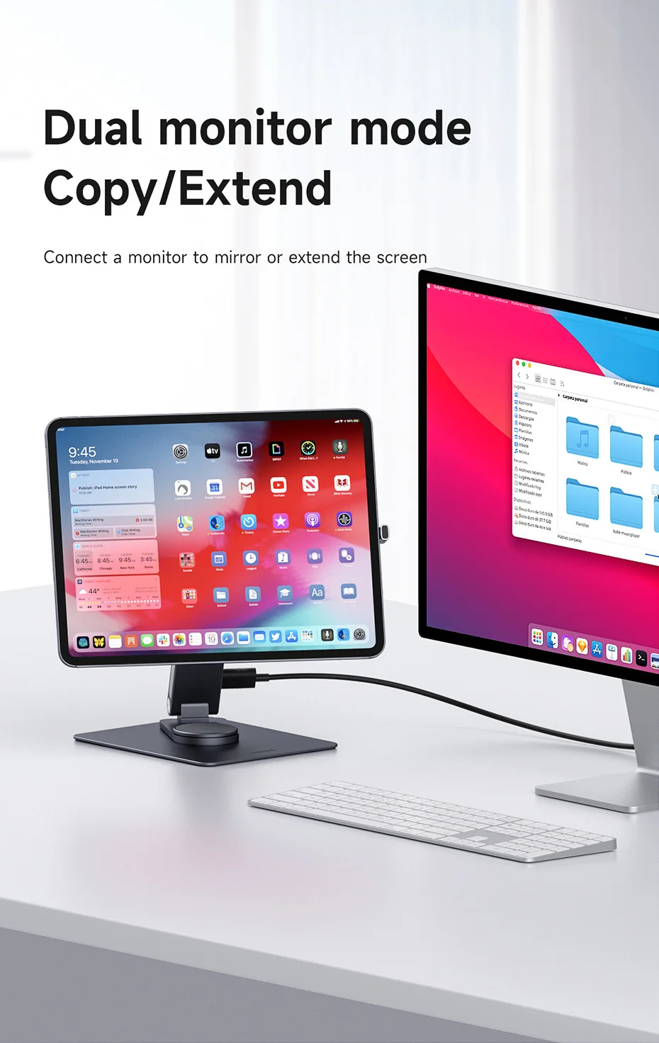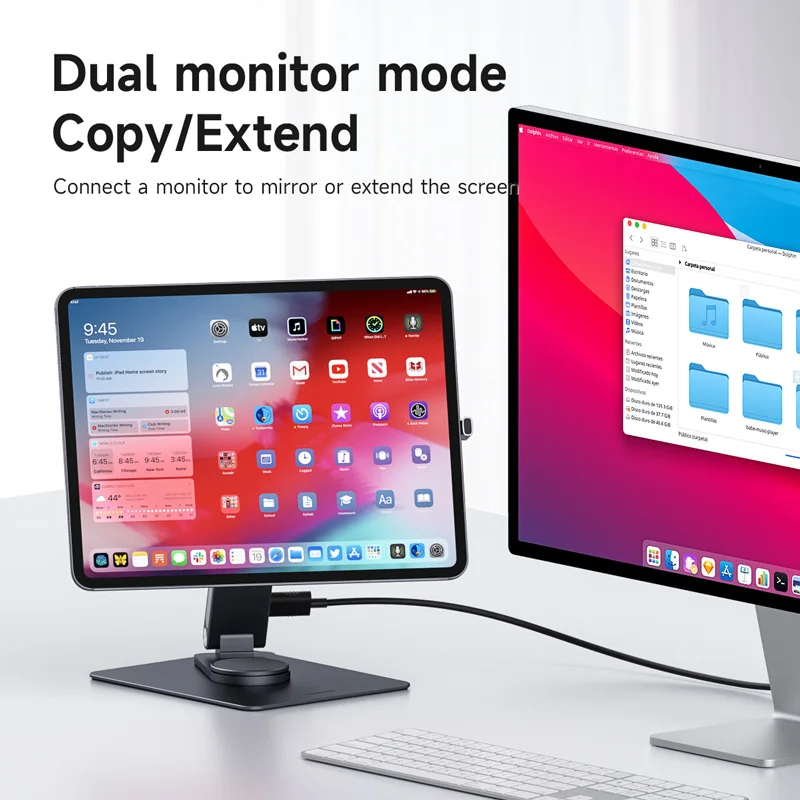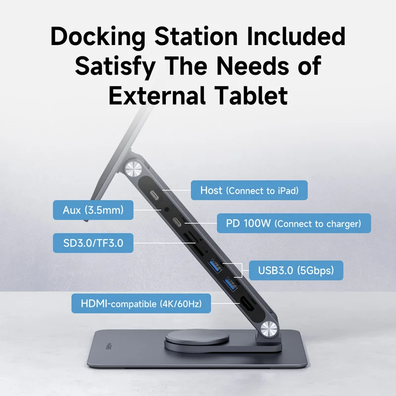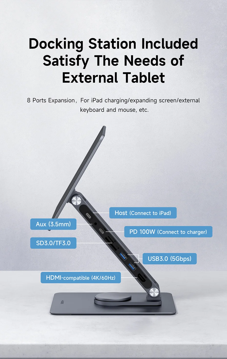Comprar Hagibis-soporte magnético para iPad Pro M4 2024, 11 pulgadas, 13 pulgadas, con estación de acoplamiento para tableta Hub, montaje ajustable de 360 °, soporte plegable