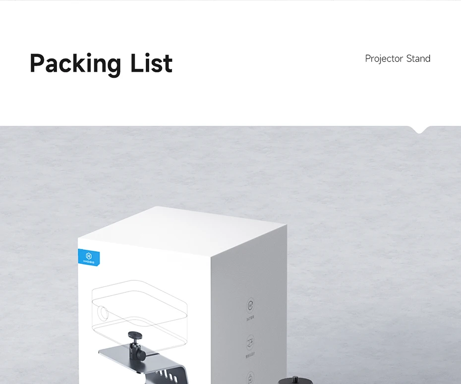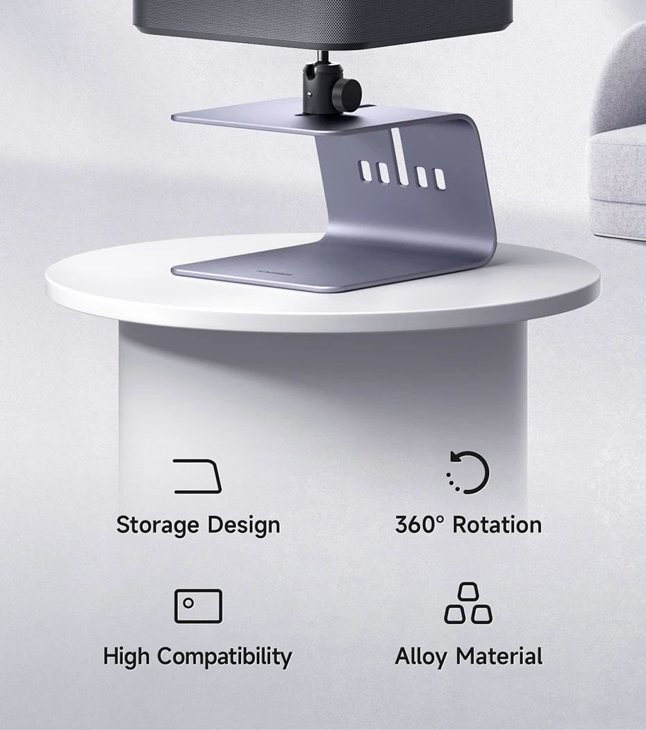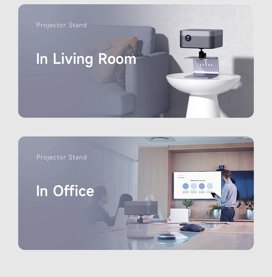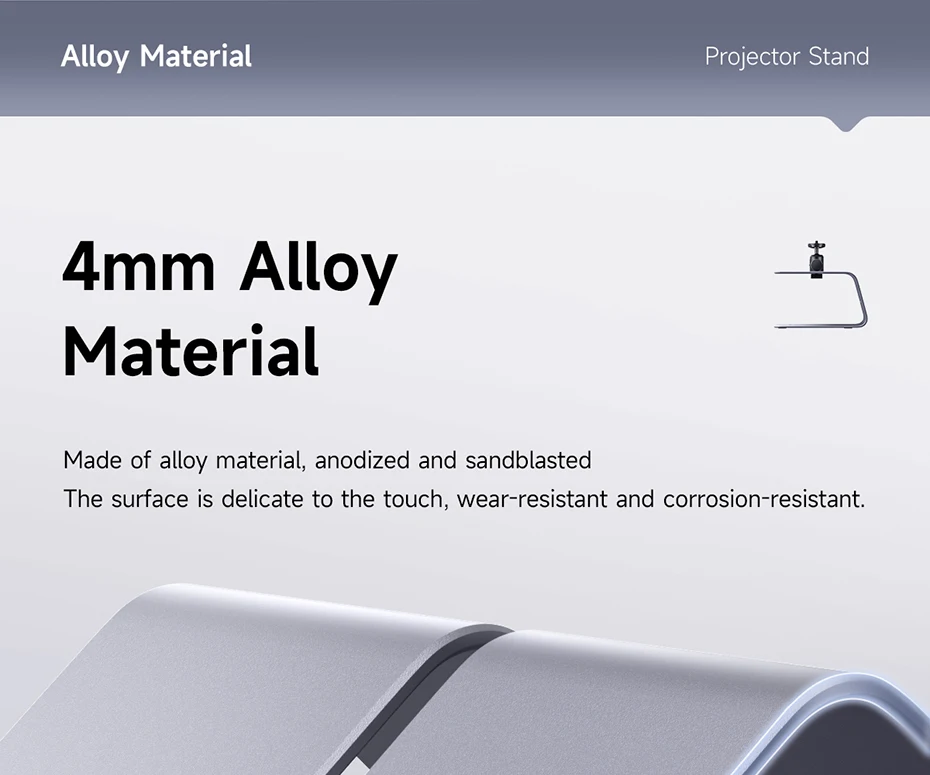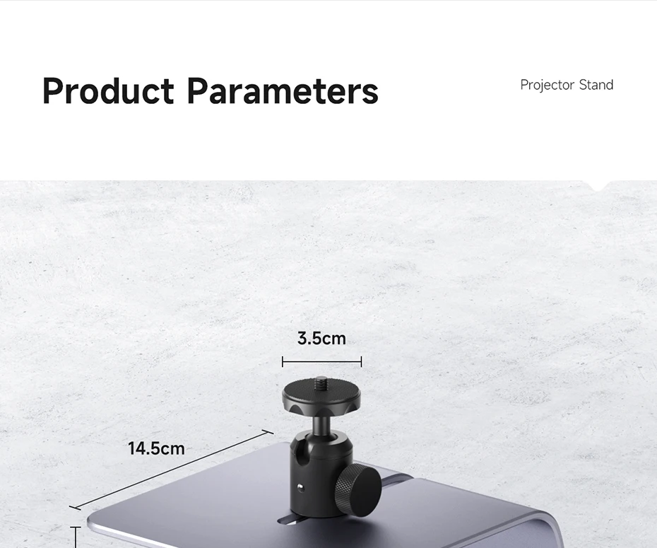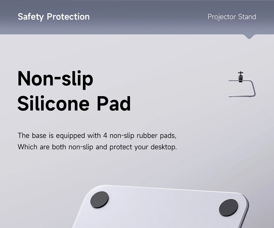 Estable y antideslizante:Todo el cuerpo del soporte está hecho de aleación de aluminio sólido de 4mm de espesor, que es estable y anti-caída. Almohadillas de silicona antideslizantes se proporcionan en la parte inferior del soporte y la parte superior de los tornillos para evitar que el soporte se mueva en el escritorio y el proyector se mueva en el soporte