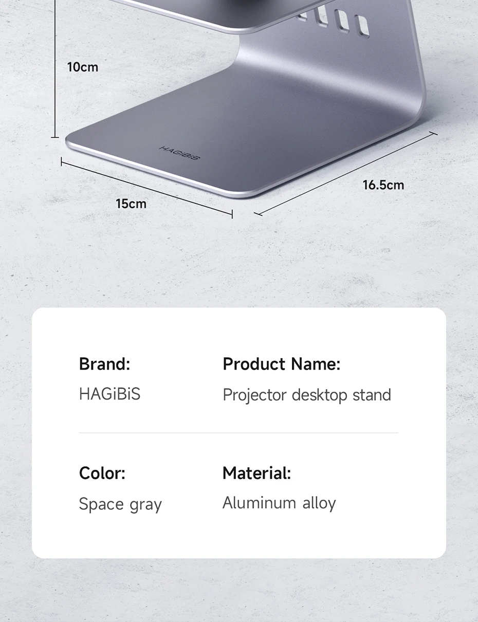 Material de aluminio:El soporte del proyector de escritorio tiene un diseño elegante y minimalista, y está hecho de aleación de aluminio de alta calidad, utilizando el proceso de chorro de arena que es muy duradero y estable, encaja perfectamente en cualquier sala de estar, estudio, o decoración de dormitorio