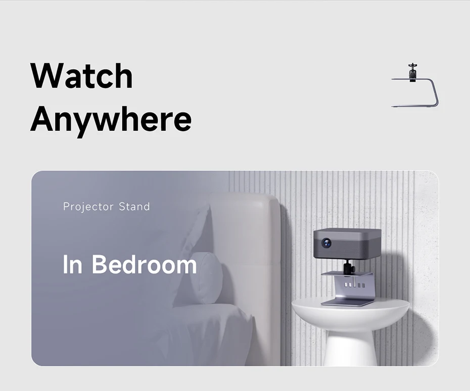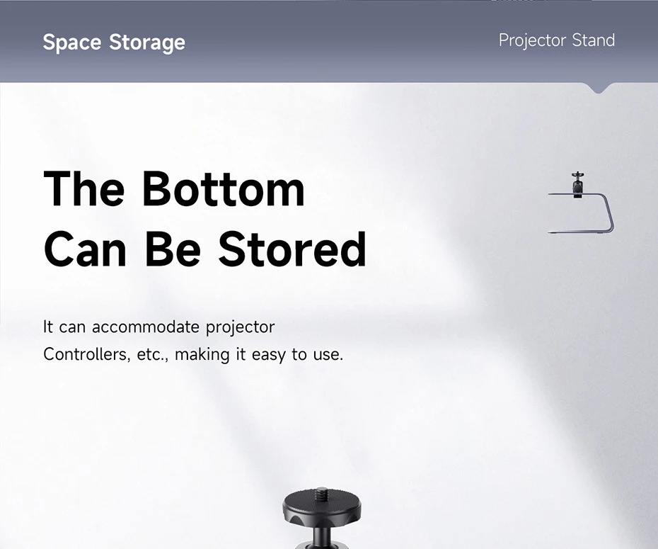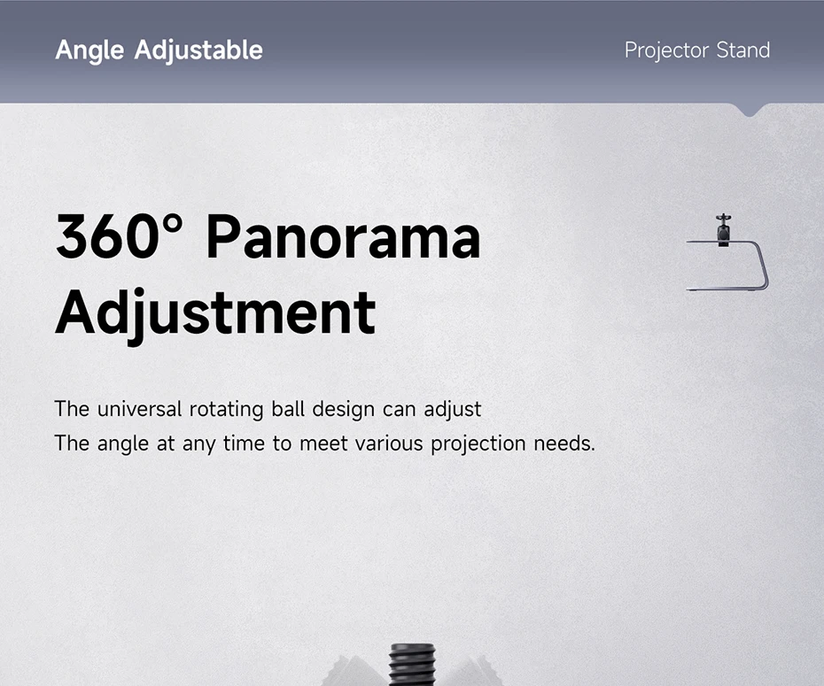 Tornillo estándar internacional:Equipado con un tornillo estándar de 1/4 pulgadas, el soporte del proyector no solo es adecuado para los mini proyectores de video, también es ideal para el clip de la cámara y el teléfono inteligente para la grabación de videos fotográficos en ángulo bajo
