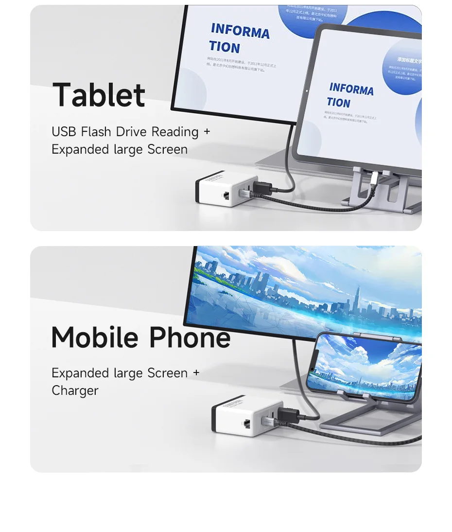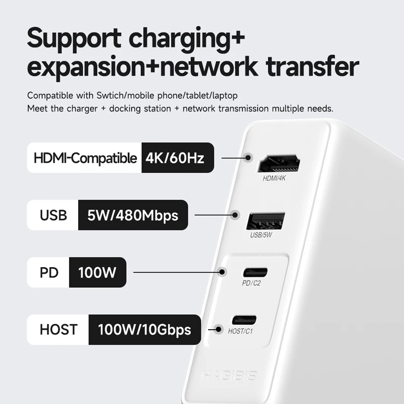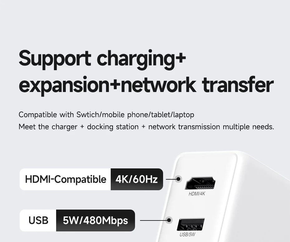 Es compatible con Swtich/teléfono móvil/tableta/portátil y cumple con los requisitos de cargador + estación de acoplamiento + transmisión de red.