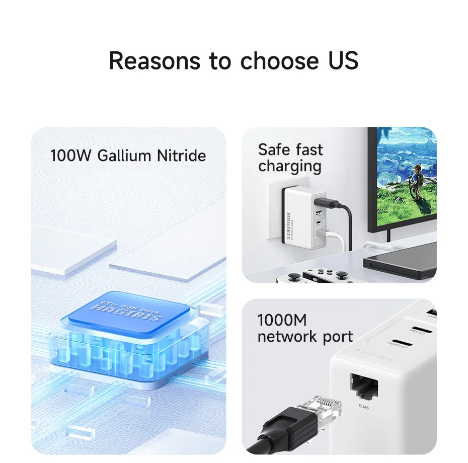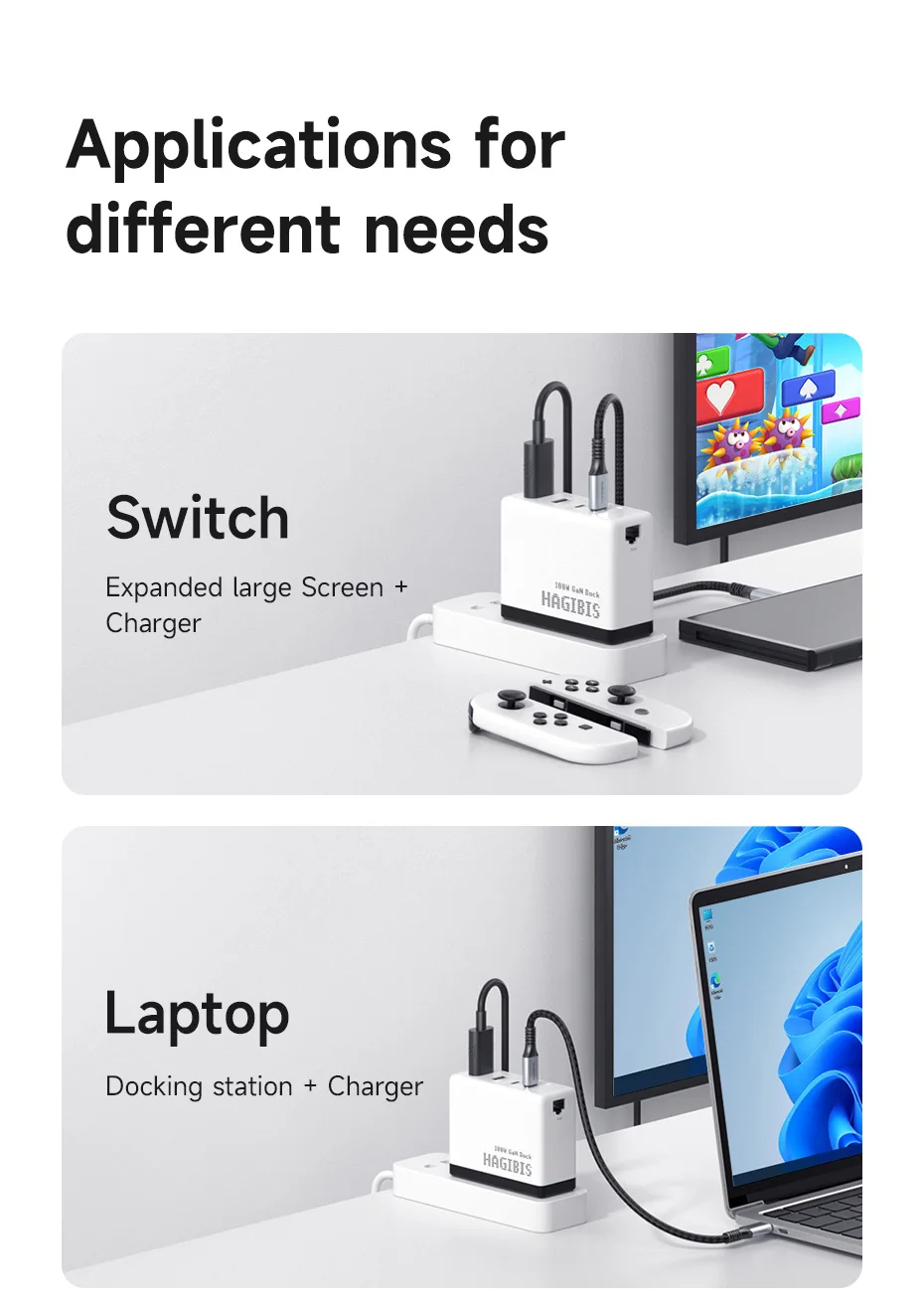 Comprar Hagibis Switch Dock Charger estación de acoplamiento de TV portátil para Nintendo Switch ROG Ally 30W con vídeo 4K 100W RJ45 carga rápida
