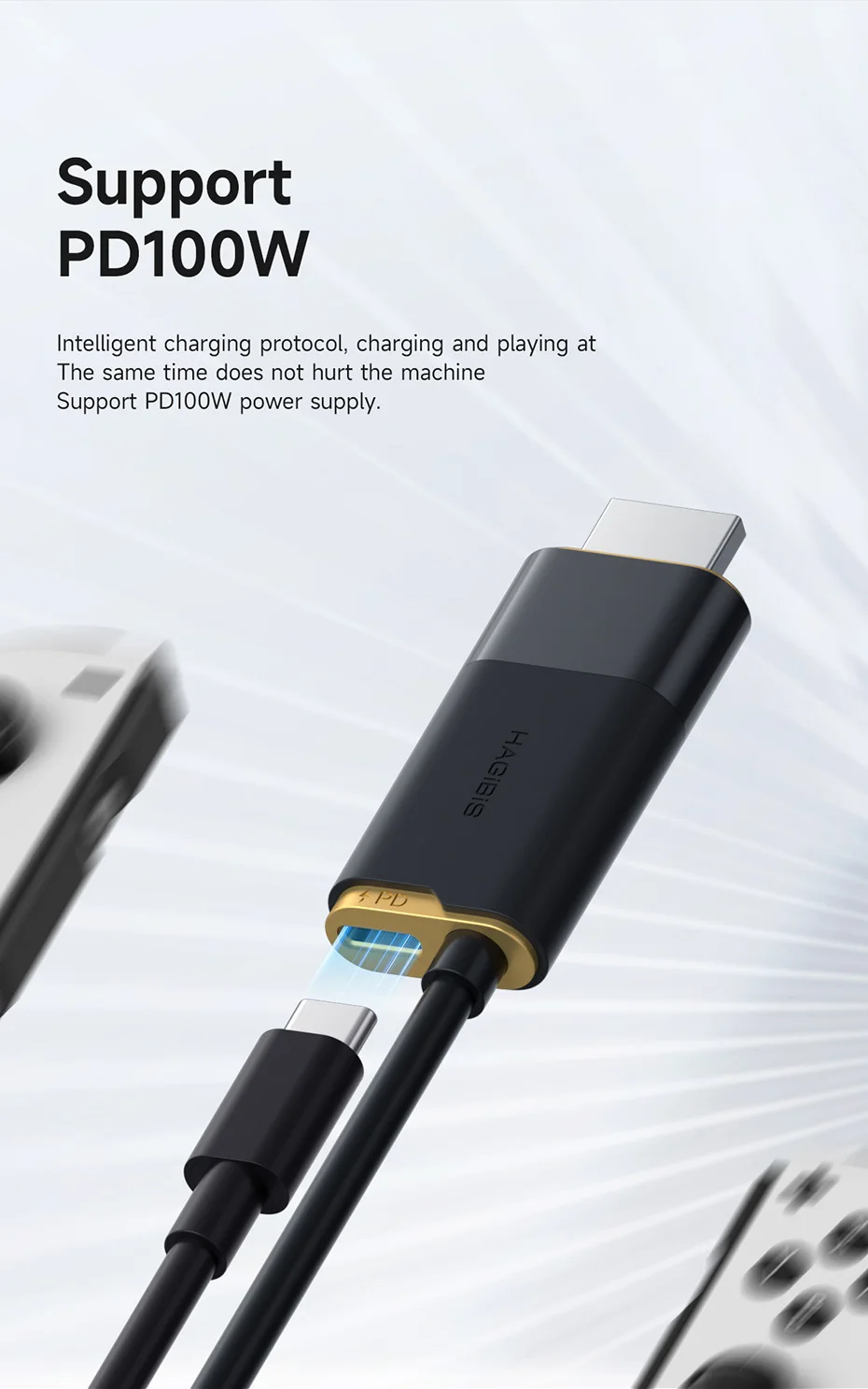 Carga rápida PD:Utilizando un chip inteligente certificado PD, que puede convertir eficazmente el voltaje fluctuante en voltaje estable.Este cable compatible con USB C a HDMI admite carga rápida PD de 100 W, que se puede cargar mientras se juega y no dañará el host del Switch.Nota: utilice el adaptador de corriente del interruptor oficial durante la carga.