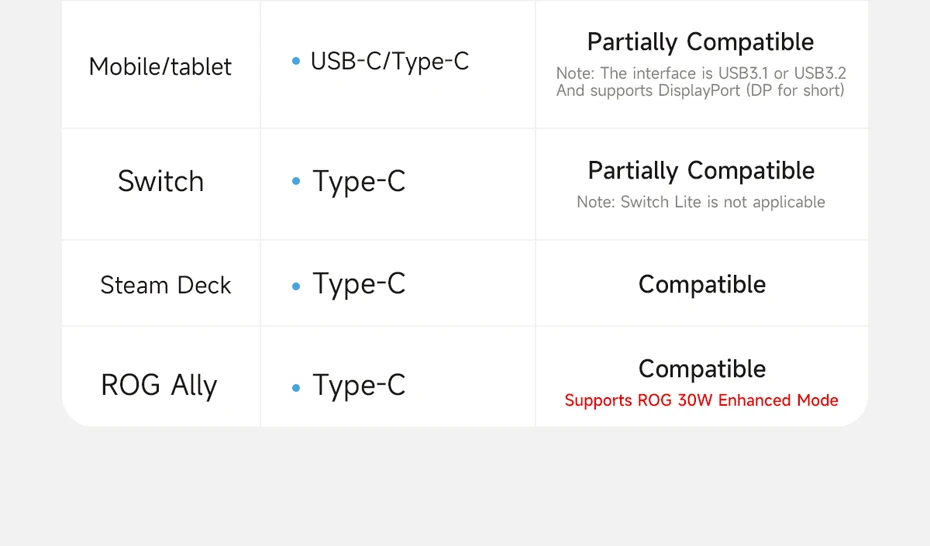 Consejos cálidos:Este adaptador USB C funciona con el modo de TV Nintendo Switch requiere una fuente de alimentación externa.Le recomendamos que utilice el cargador con interruptor original o un cargador con una salida superior a 39 W para evitar afectar el uso normal.